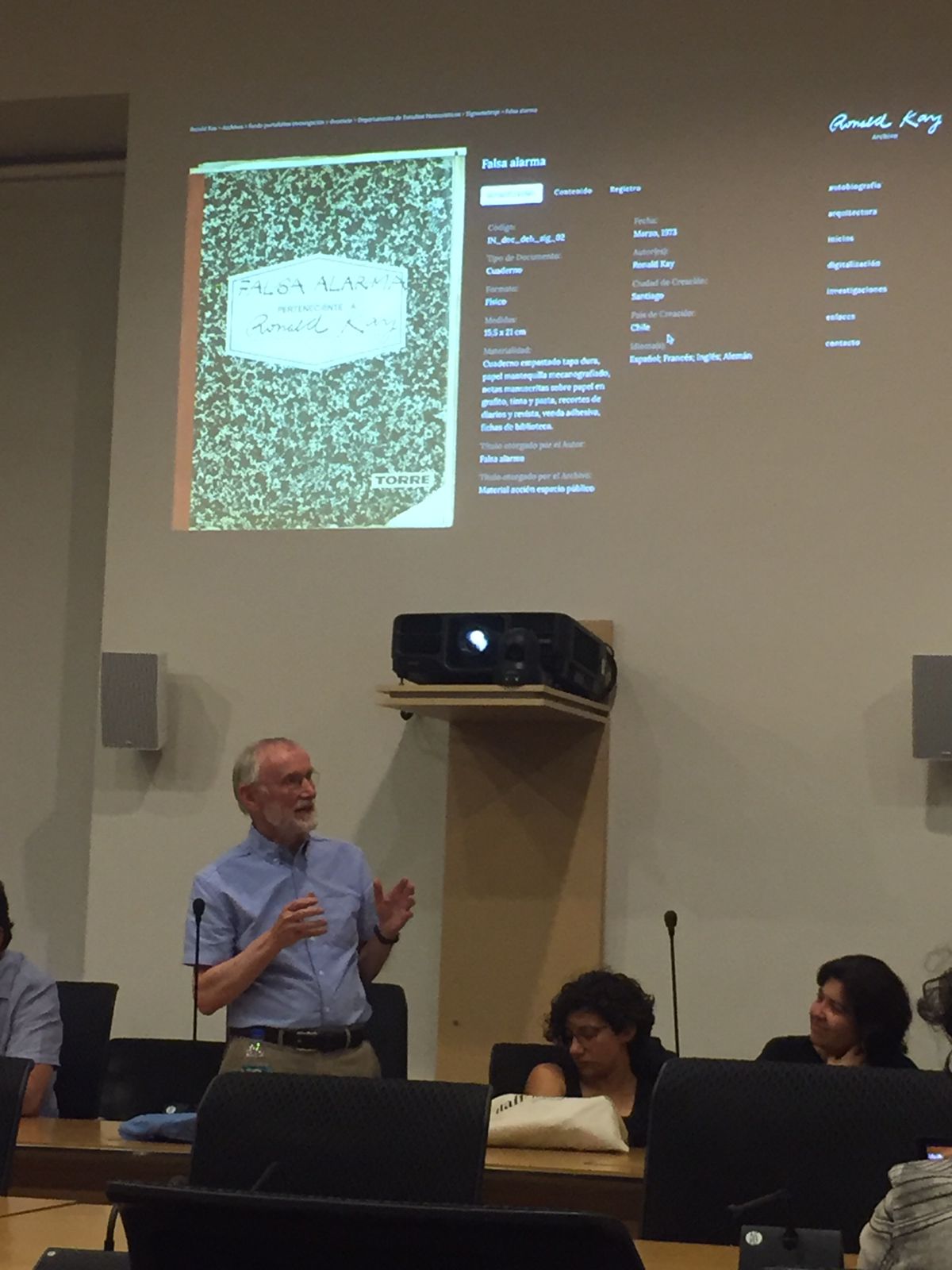 Primer momento que ve la luz el sitio web oficial que alberga el legado de Ronald Kay: www.archivoronaldkay.org. La presentación estuvo a cargo de Paz López, académica del Departamento de Teoría de las Artes de la Facultad de Artes de la U. de Chile; Mauricio Barría, académico del Departamento de Teatro de la Facultad de Artes de la U. de Chile; e Iván Flores, académico y Director del Instituto de Artes Visuales de la Universidad Austral de Chile. Moderando Lorena Ramírez Alamo, directora del archivo Ronald Kay.