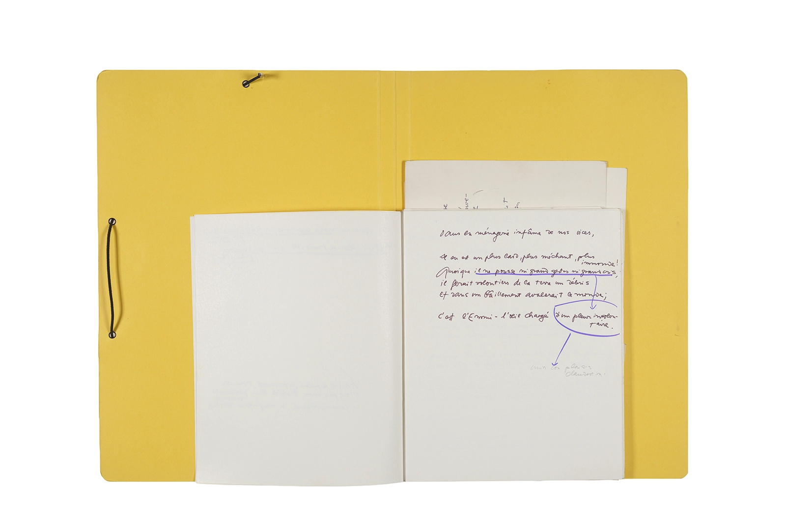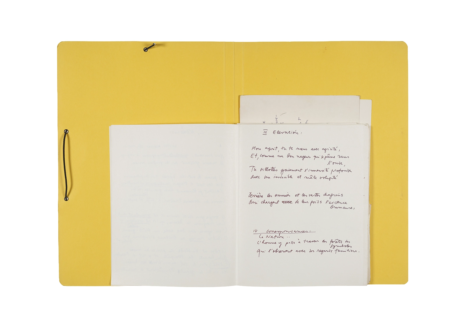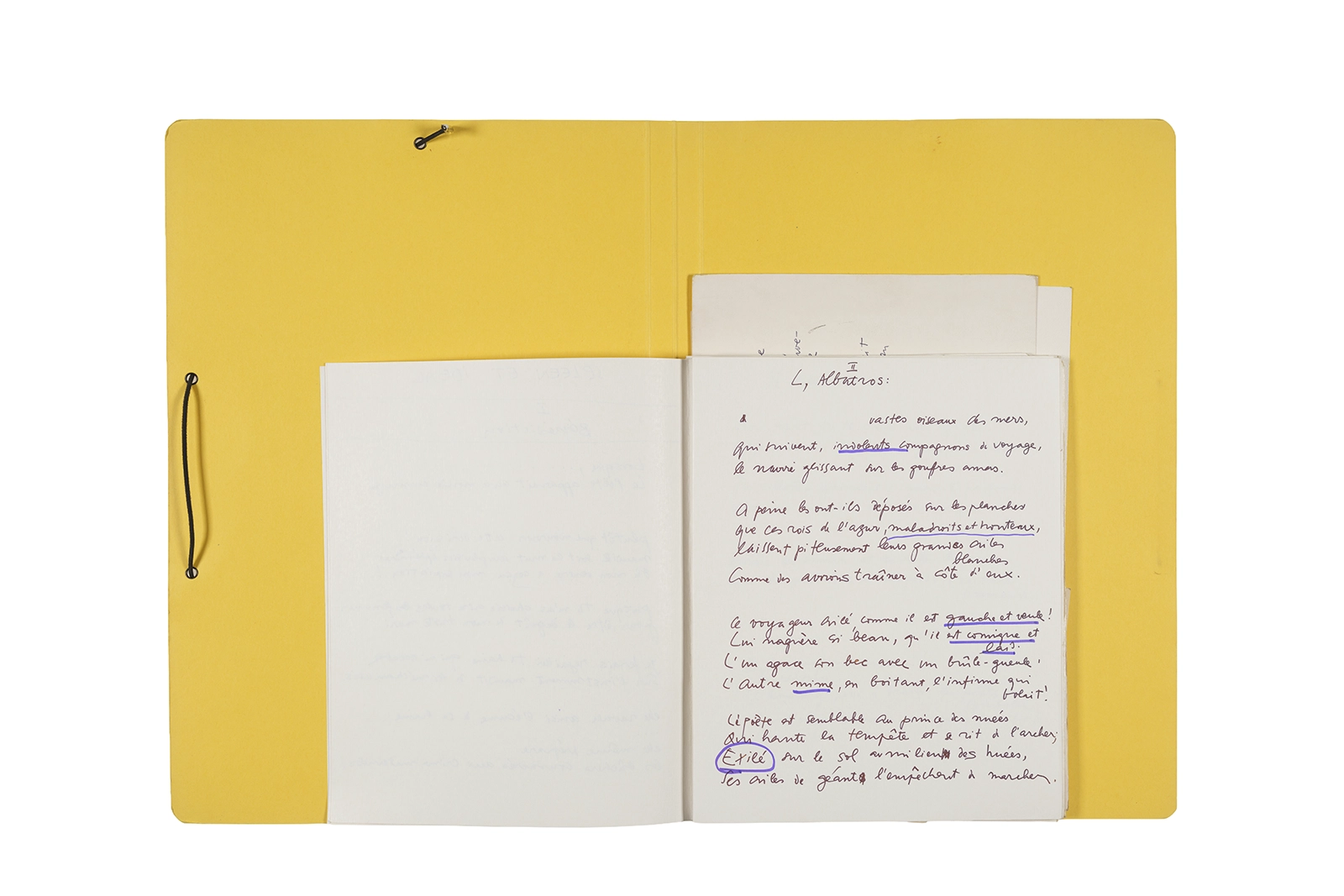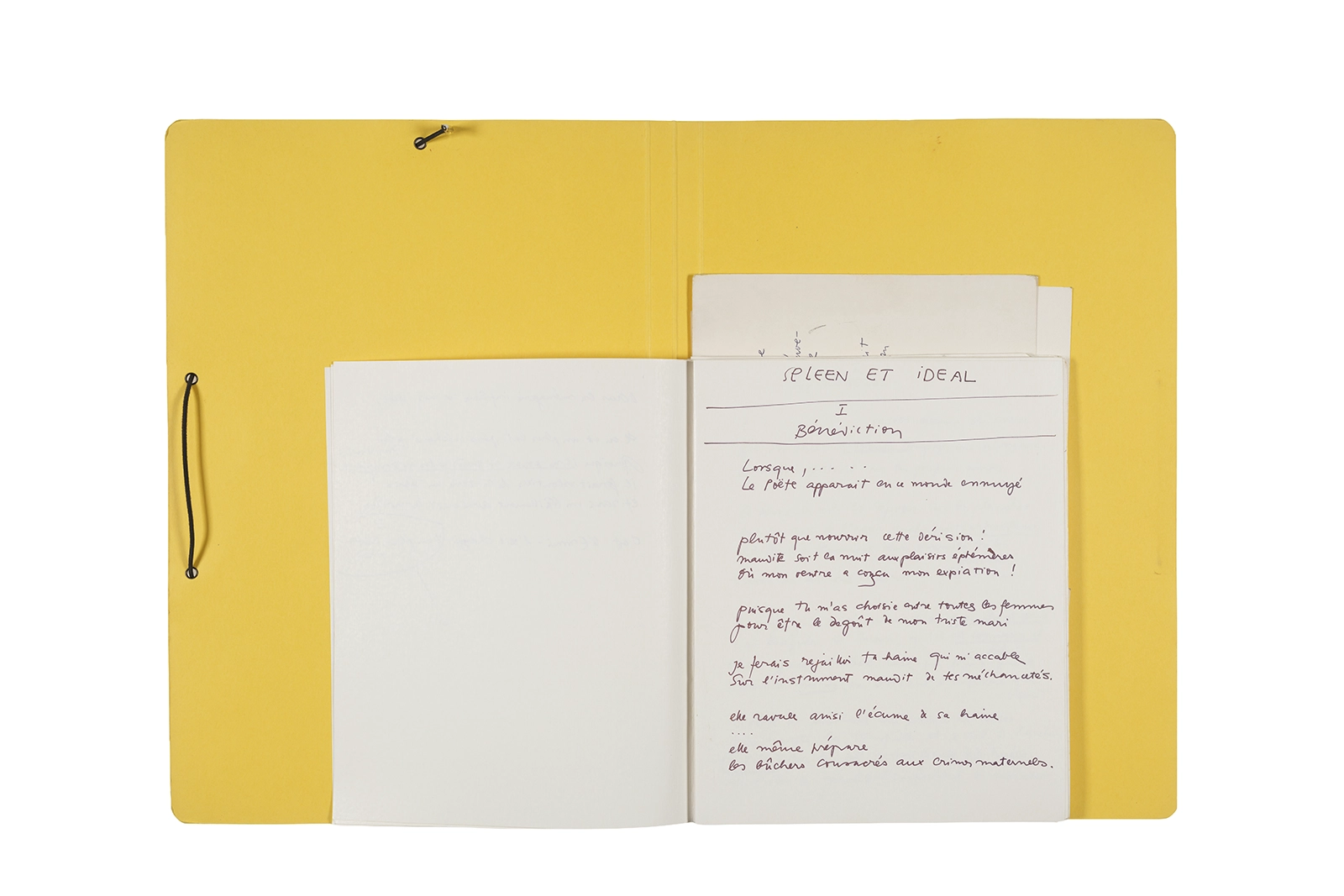 Carpeta que reúne material de trabajo vinculado al seminario “Arqueología poética del siglo XIX. Prospección de los textos de “Les Fleurs du Mal” de Charles Baudelaire en relación al conjunto de textos teóricos de Walter Benjamin reunidos en “Passagen” y a la luz de las condiciones de recepción de la actualidad americana “Las flores del mal”, dictado por Ronald Kay durante el segundo semestre de 1979, en el Departamento de Estudios Humanísticos de la Universidad de Chile. Contiene transcripciones de textos de Baudelaire, desarrollo del concepto de “Sitio eriazo”, planificaciones de clases y evaluaciones, fichas bibliográficas, referencias fotográficas y apuntes donde se menciona a Enrique Lihn, Arthur Rimbaud, Cy Twombly, André Bazin, Yuri Tyniánov y Sigmund Freud, entre otros. En esta carpeta se incluye, además, una libreta con notas vinculadas también al estudio de “Las flores del mal” de Charles Baudelaire.