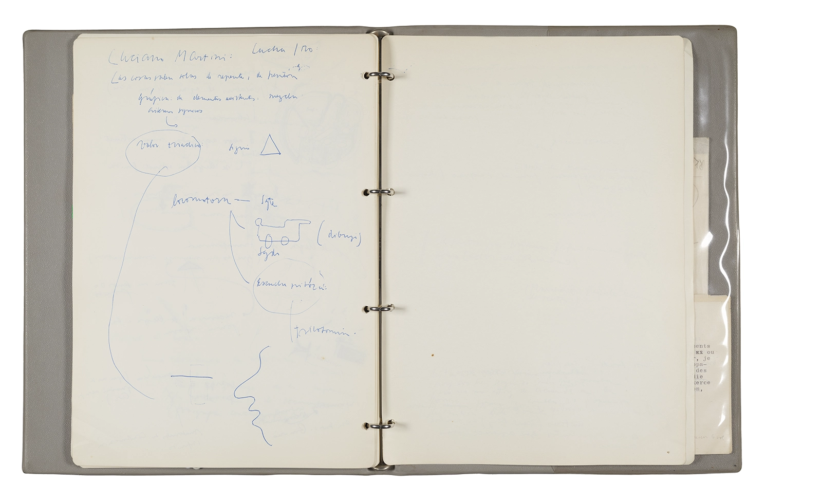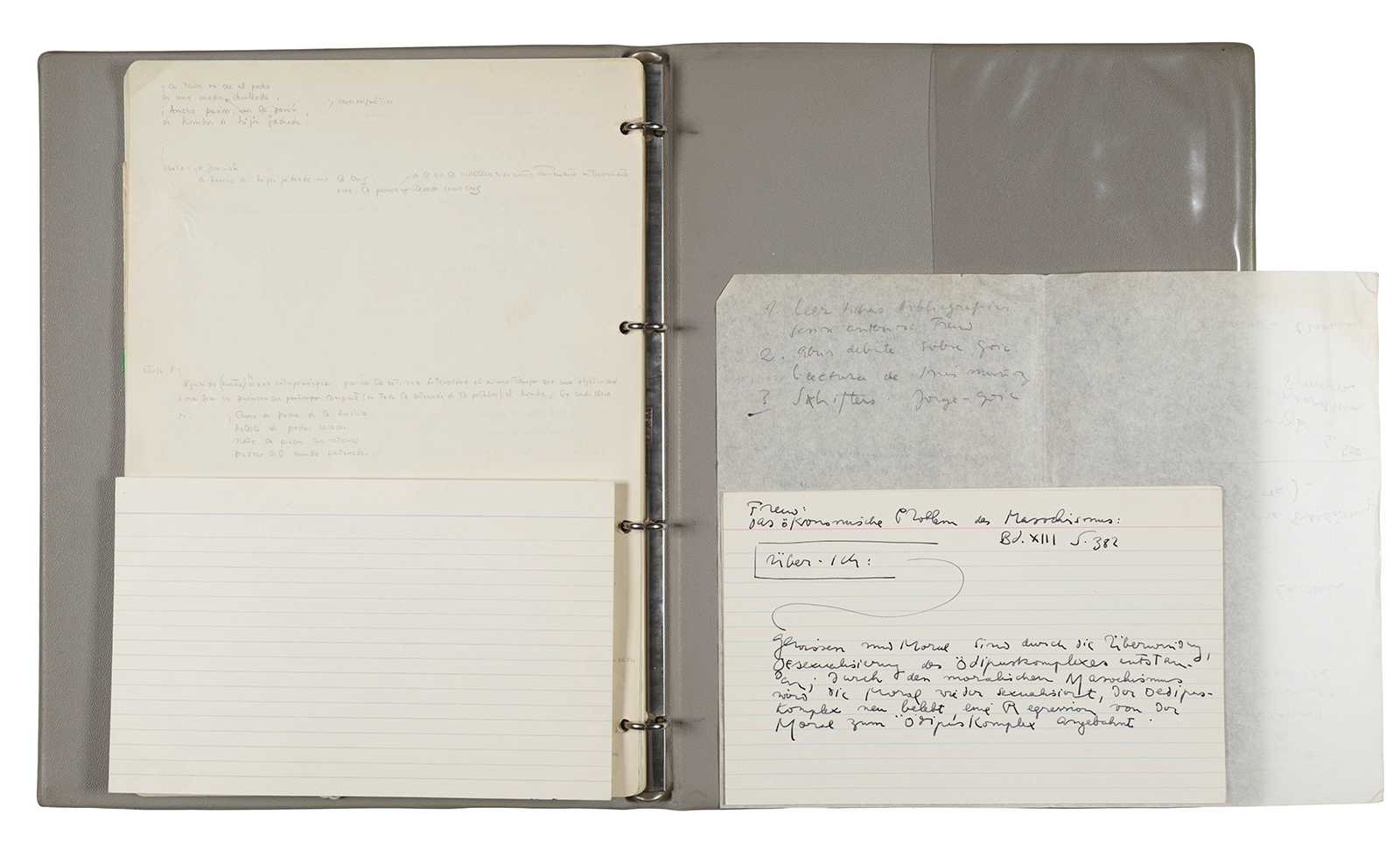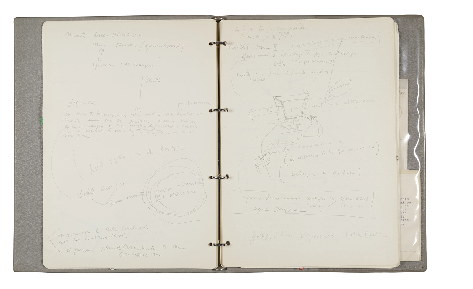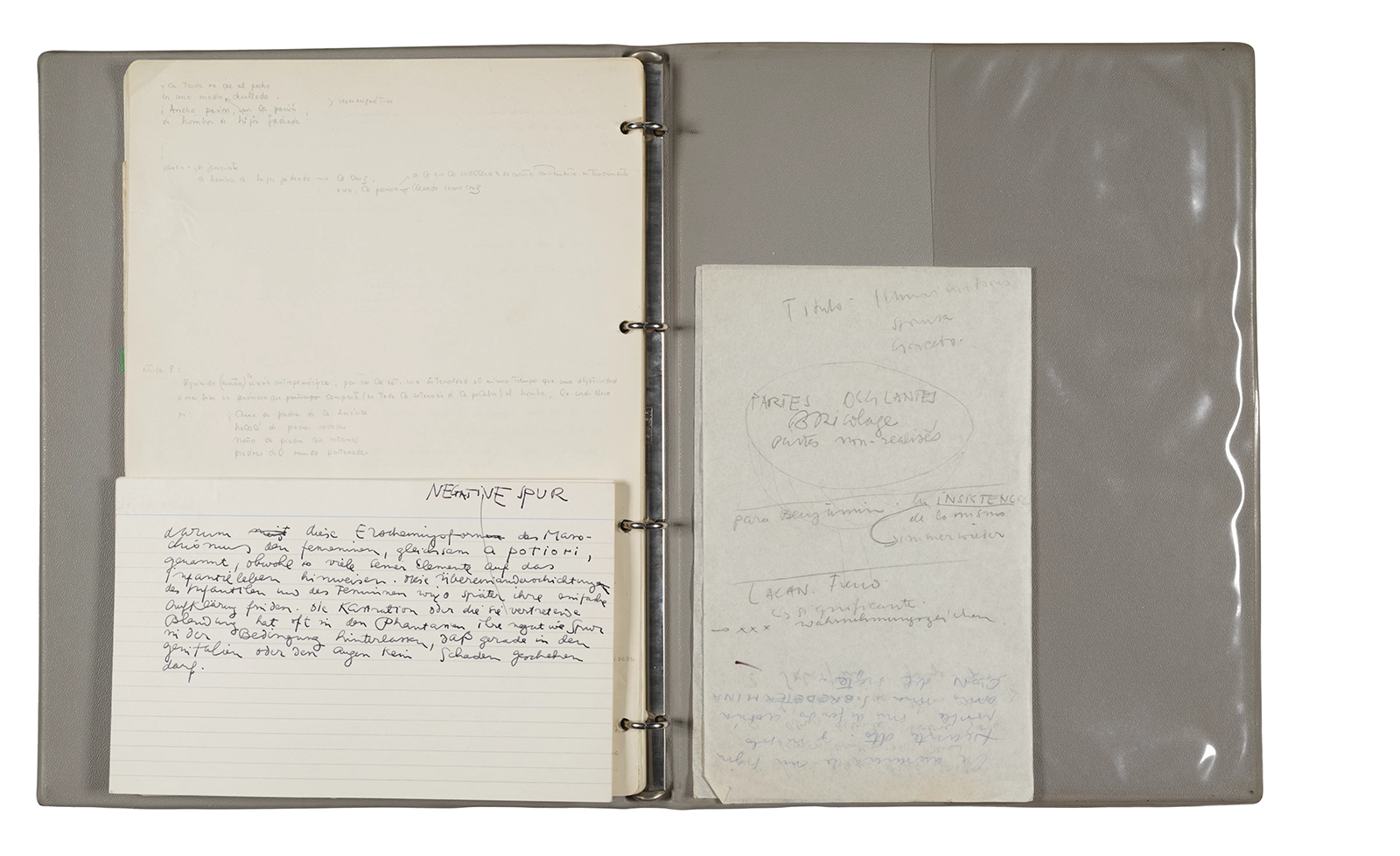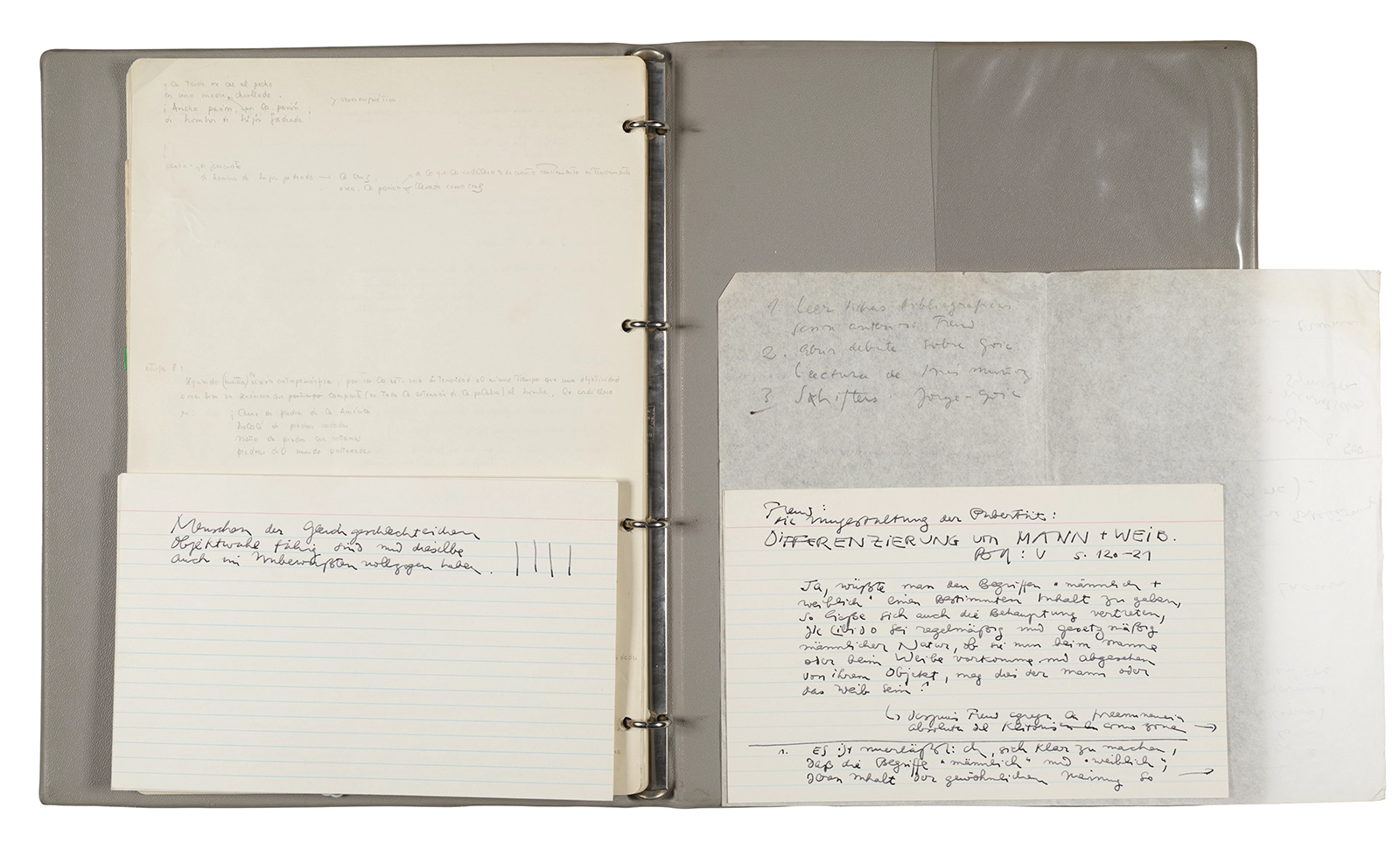 Esta carpeta reúne distintos materiales vinculados al seminario centrado en los textos de Stéphane Mallarmé y en “Iluminaciones” de Arthur Rimbaud que dirigió Ronald Kay junto a Enrique Lihn durante un año y medio, entre 1973 y 1974, en el Departamento de Estudios Humanísticos de la Universidad de Chile. Se incluyen aquí apuntes sobre “Iluminaciones” de Rimbaud, fichas de lectura sobre Mallarmé con el título “Propuesta de un modelo de interlección de la sintaxis en la prosa -práctica teorica- mallarmeana”, y una lista con grupos de trabajo en los que se dividirían los participantes del seminario, entre ellos, Dimela Eltit, María Eugenia Brito, Juan Balbontín, Rodrigo Cánovas y Carlos Flores. Así mismo, esta carpeta contiene recortes de prensa de la revista “Time”, entre ellos uno que contiene la nota “Allende’s Last Day”, publicada en febrero del año 1974, y dos páginas de una revista sin identificar: una con la reproducción de la obra “Hervas” de Wolf Vostell, y otra con una foto del desierto peruano, ambas fechadas en 1975.