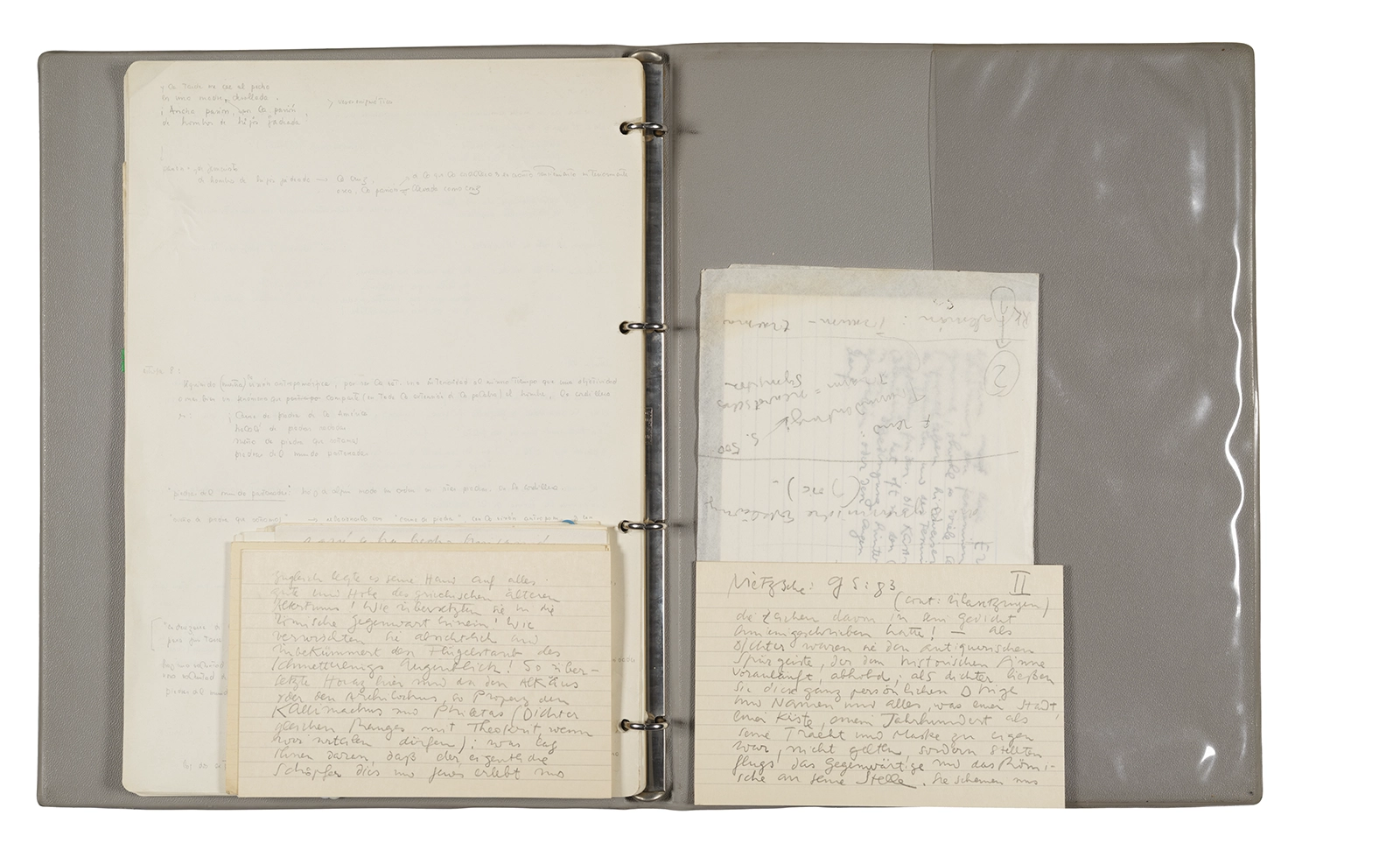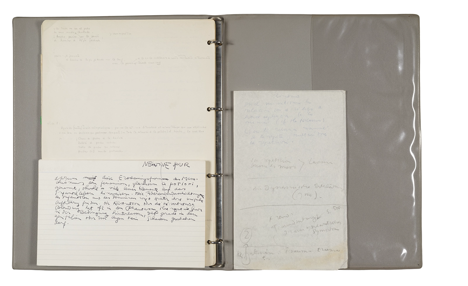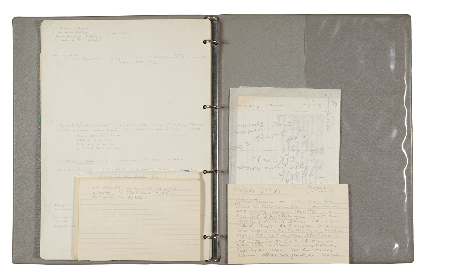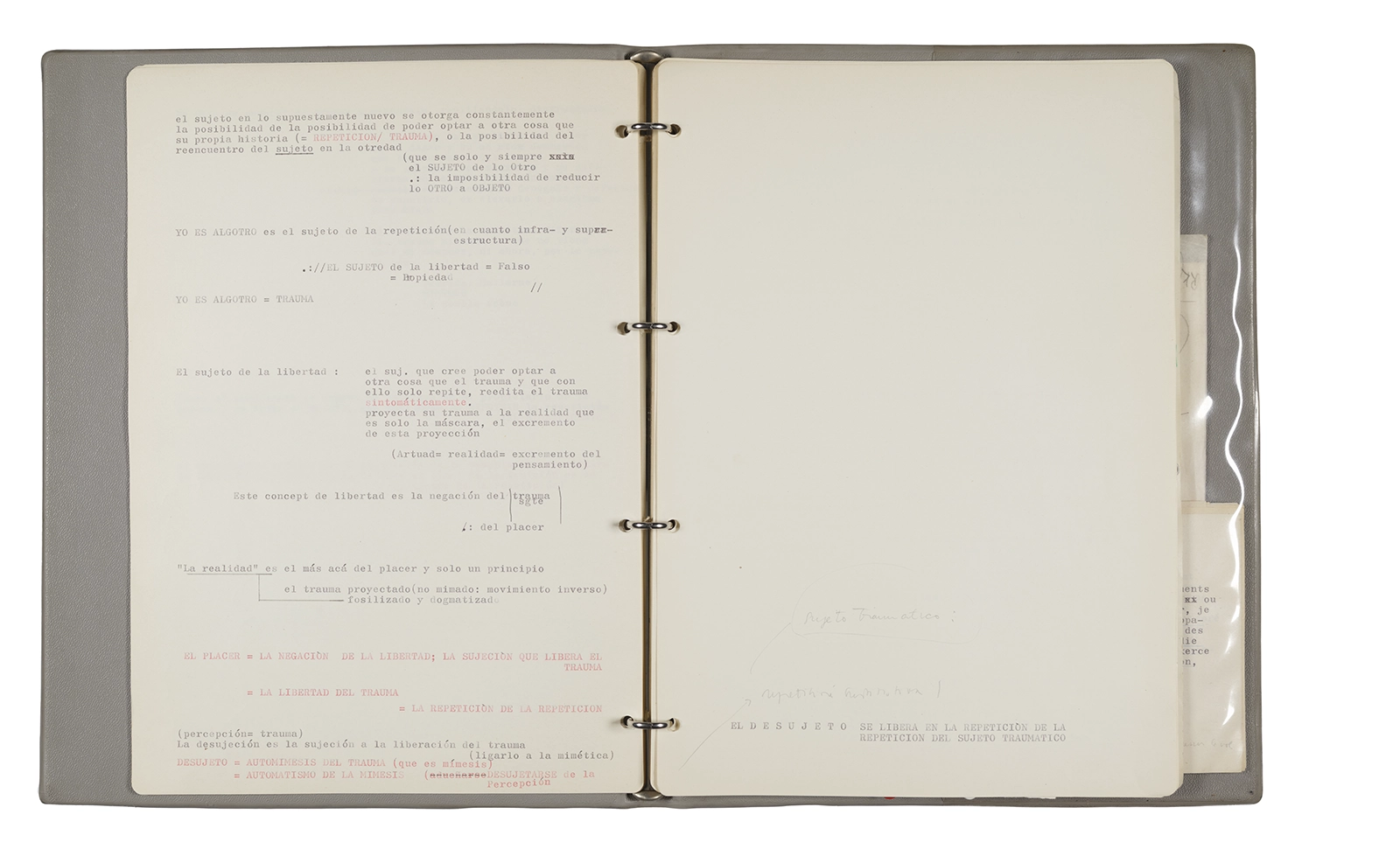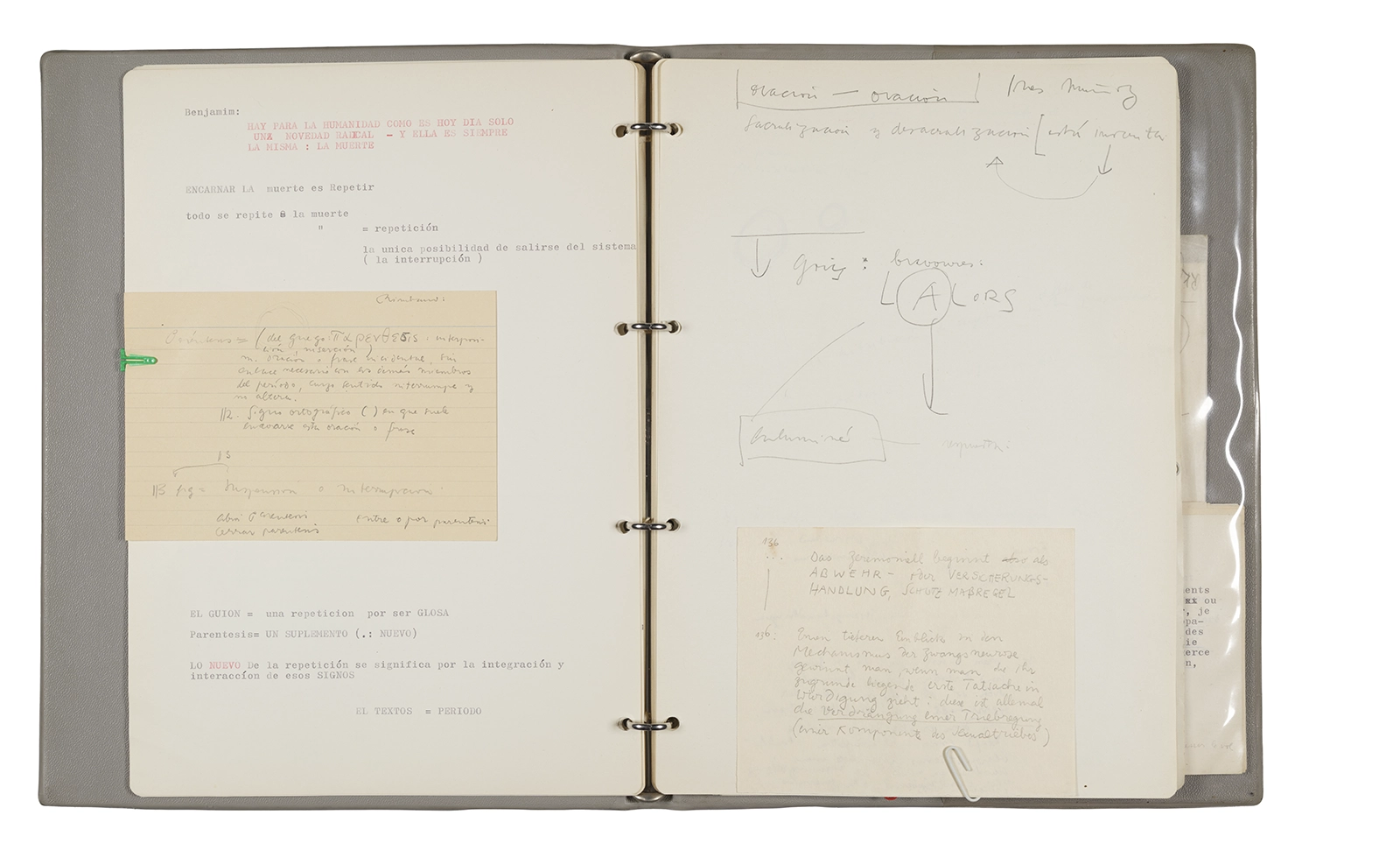 Esta carpeta reúne distintos materiales vinculados al seminario centrado en los textos de Stéphane Mallarmé y en “Iluminaciones” de Arthur Rimbaud que dirigió Ronald Kay junto a Enrique Lihn durante un año y medio, entre 1973 y 1974, en el Departamento de Estudios Humanísticos de la Universidad de Chile. Se incluyen aquí apuntes sobre “Iluminaciones” de Rimbaud, fichas de lectura sobre Mallarmé con el título “Propuesta de un modelo de interlección de la sintaxis en la prosa -práctica teorica- mallarmeana”, y una lista con grupos de trabajo en los que se dividirían los participantes del seminario, entre ellos, Dimela Eltit, María Eugenia Brito, Juan Balbontín, Rodrigo Cánovas y Carlos Flores. Así mismo, esta carpeta contiene recortes de prensa de la revista “Time”, entre ellos uno que contiene la nota “Allende’s Last Day”, publicada en febrero del año 1974, y dos páginas de una revista sin identificar: una con la reproducción de la obra “Hervas” de Wolf Vostell, y otra con una foto del desierto peruano, ambas fechadas en 1975.