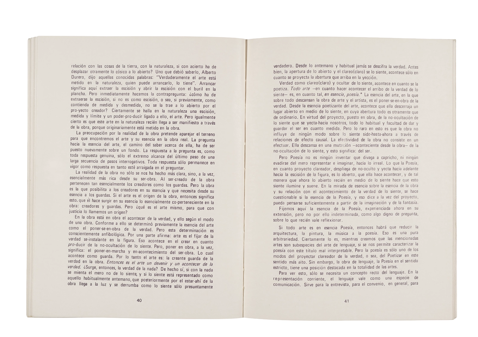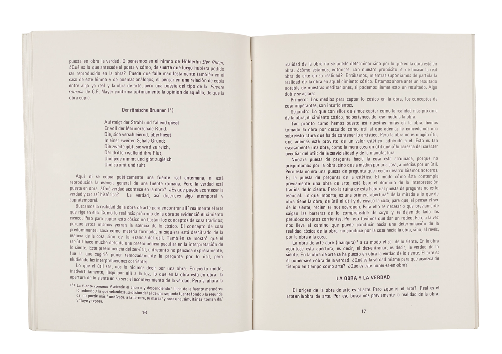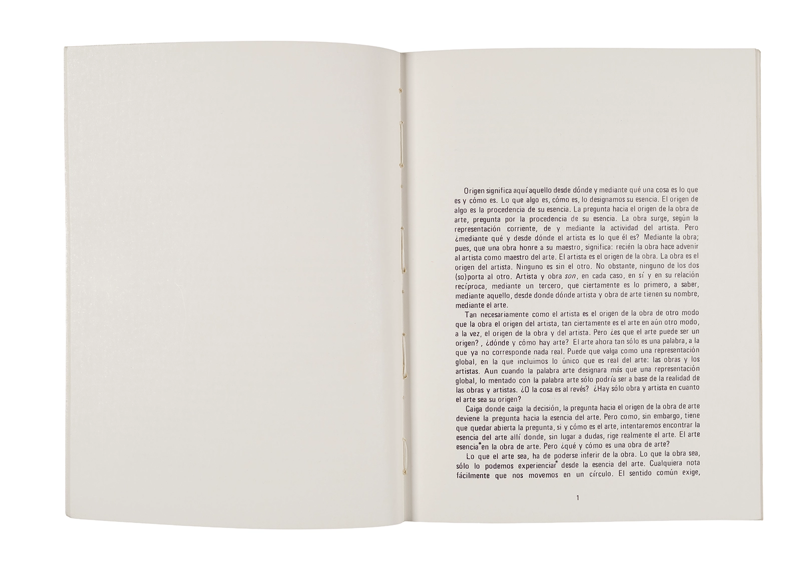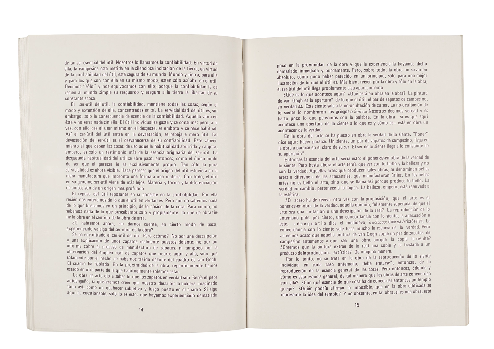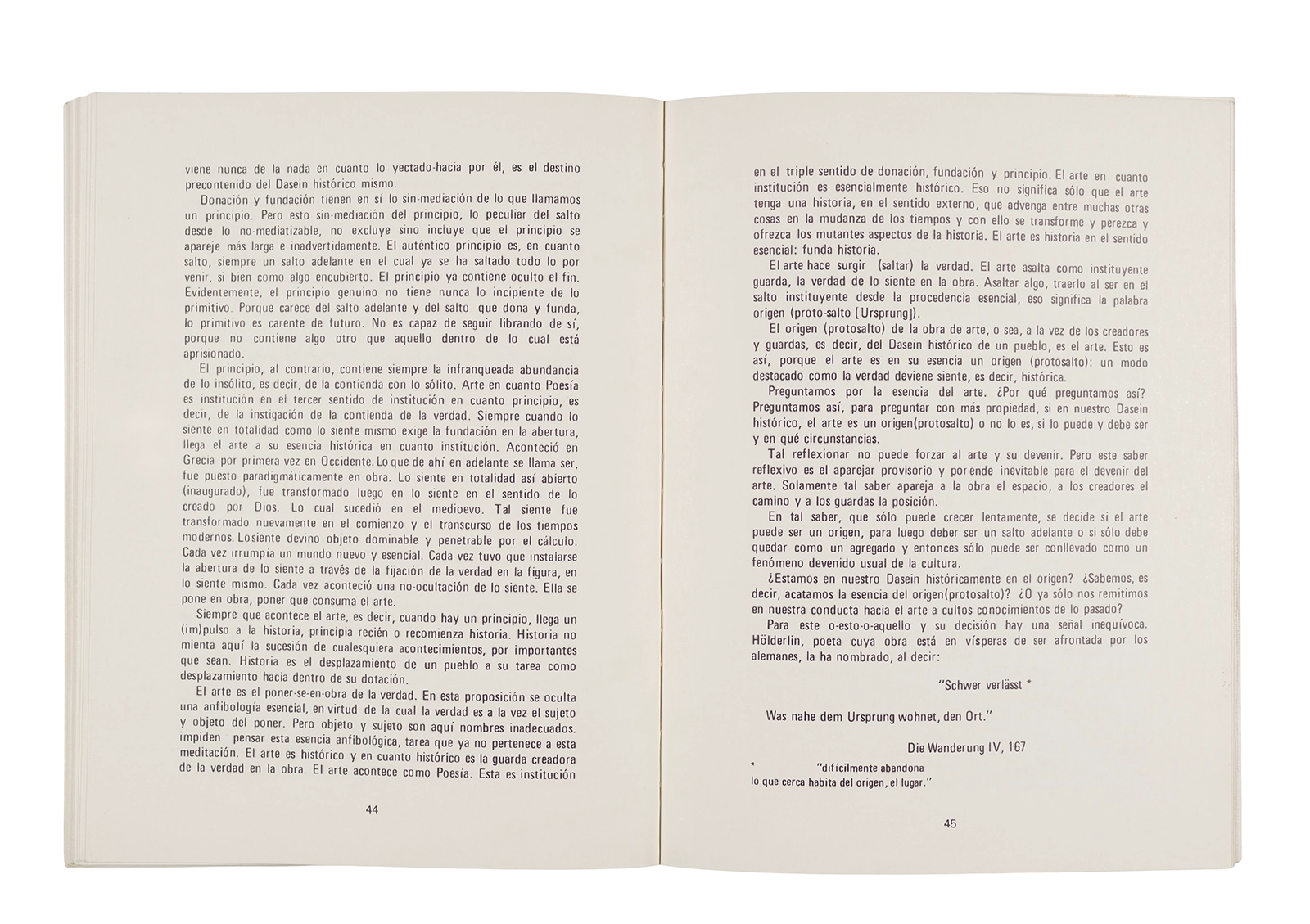 Traducción al español realizada por Ronald Kay del ensayo “El Origen de la Obra de Arte” de Martin Heidegger. Esta fue publicada en 1976 como libro por el Departamento de Estudios Humanísticos, en una edición de uso exclusivo para estudiantes de la Universidad de Chile. Incluye una nota del traductor.