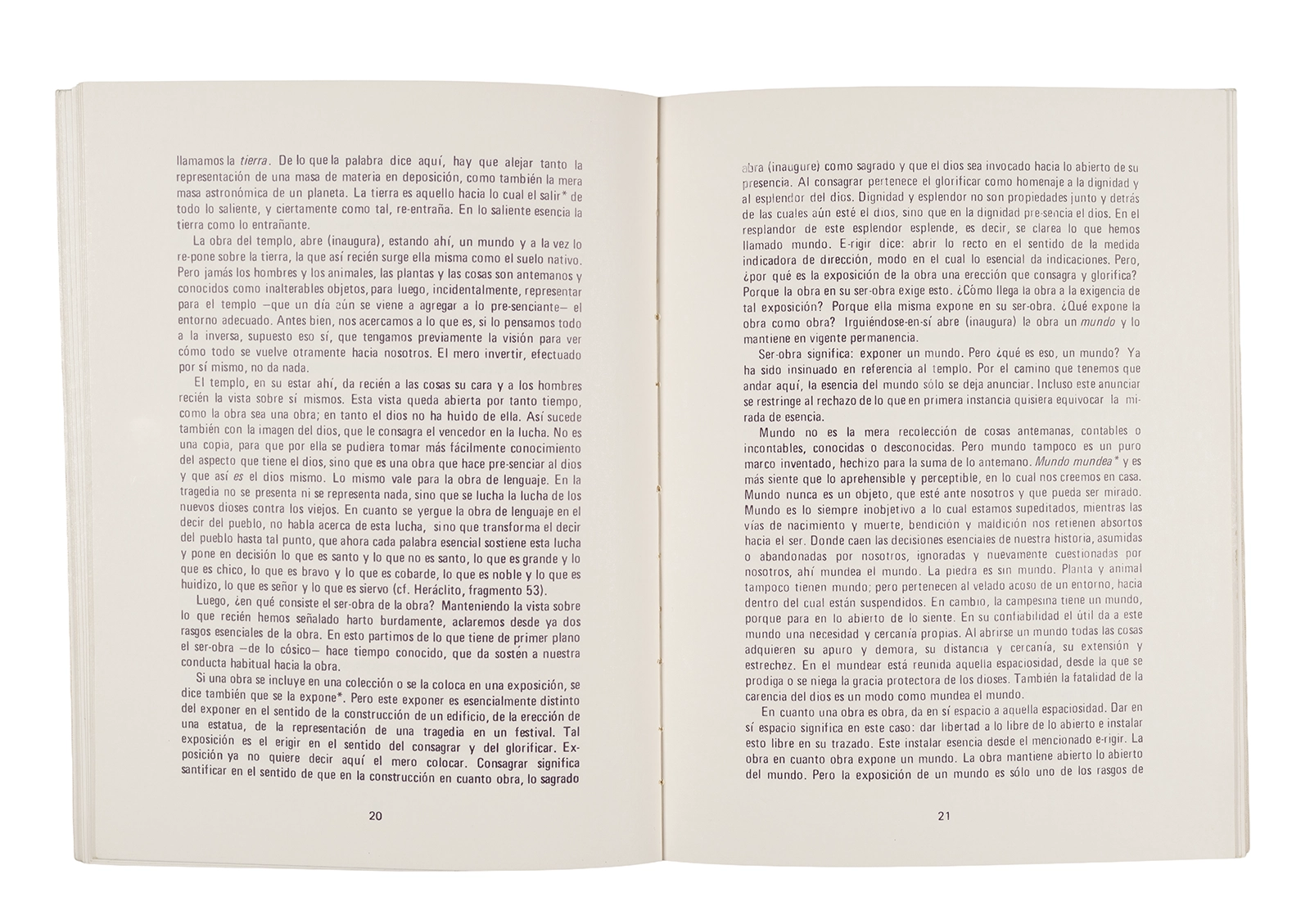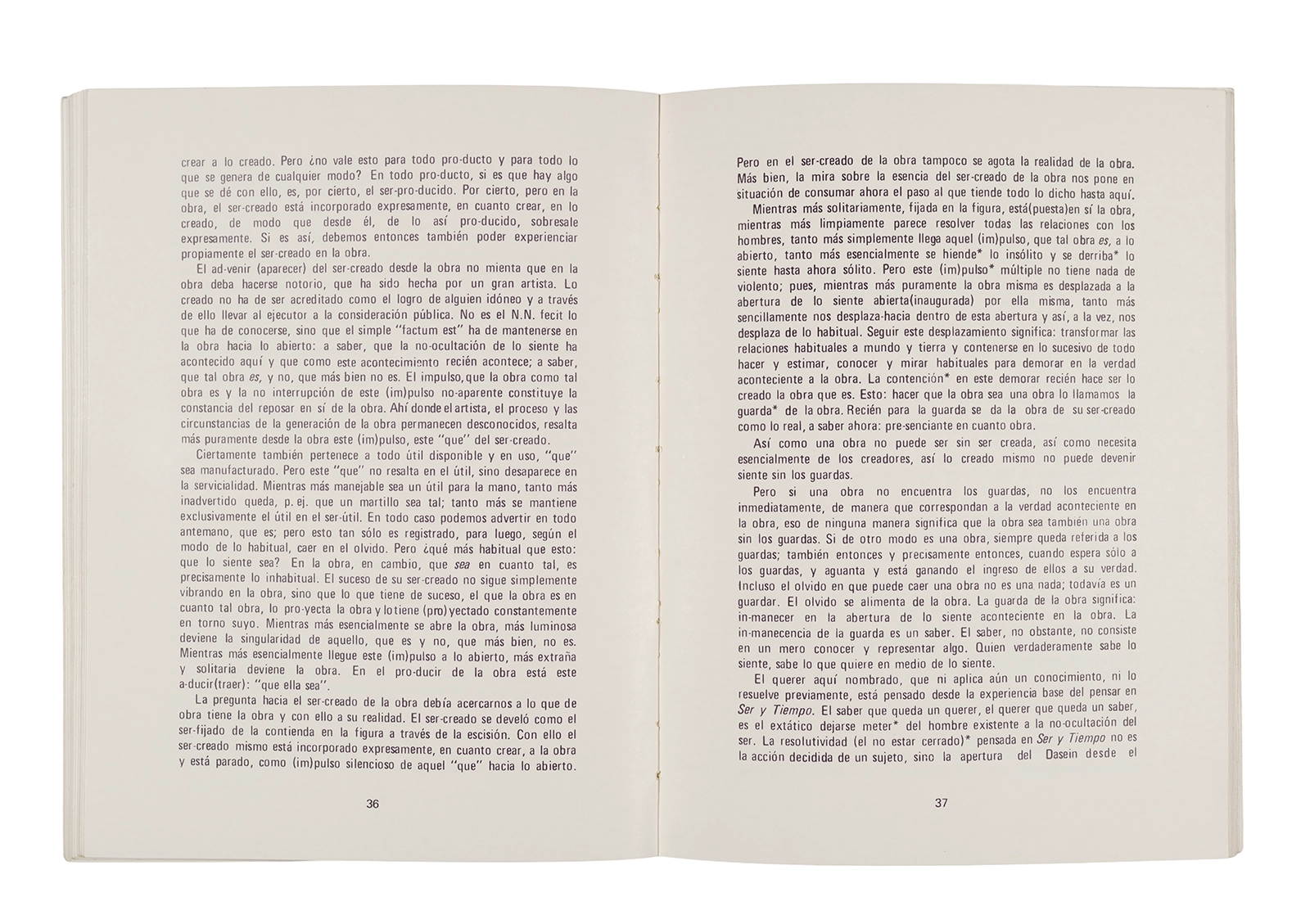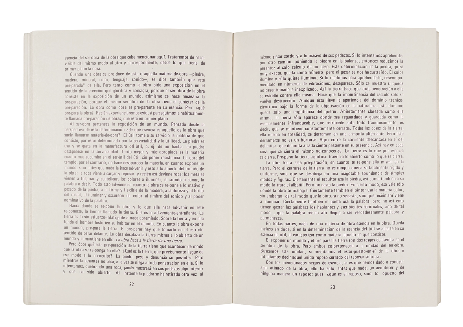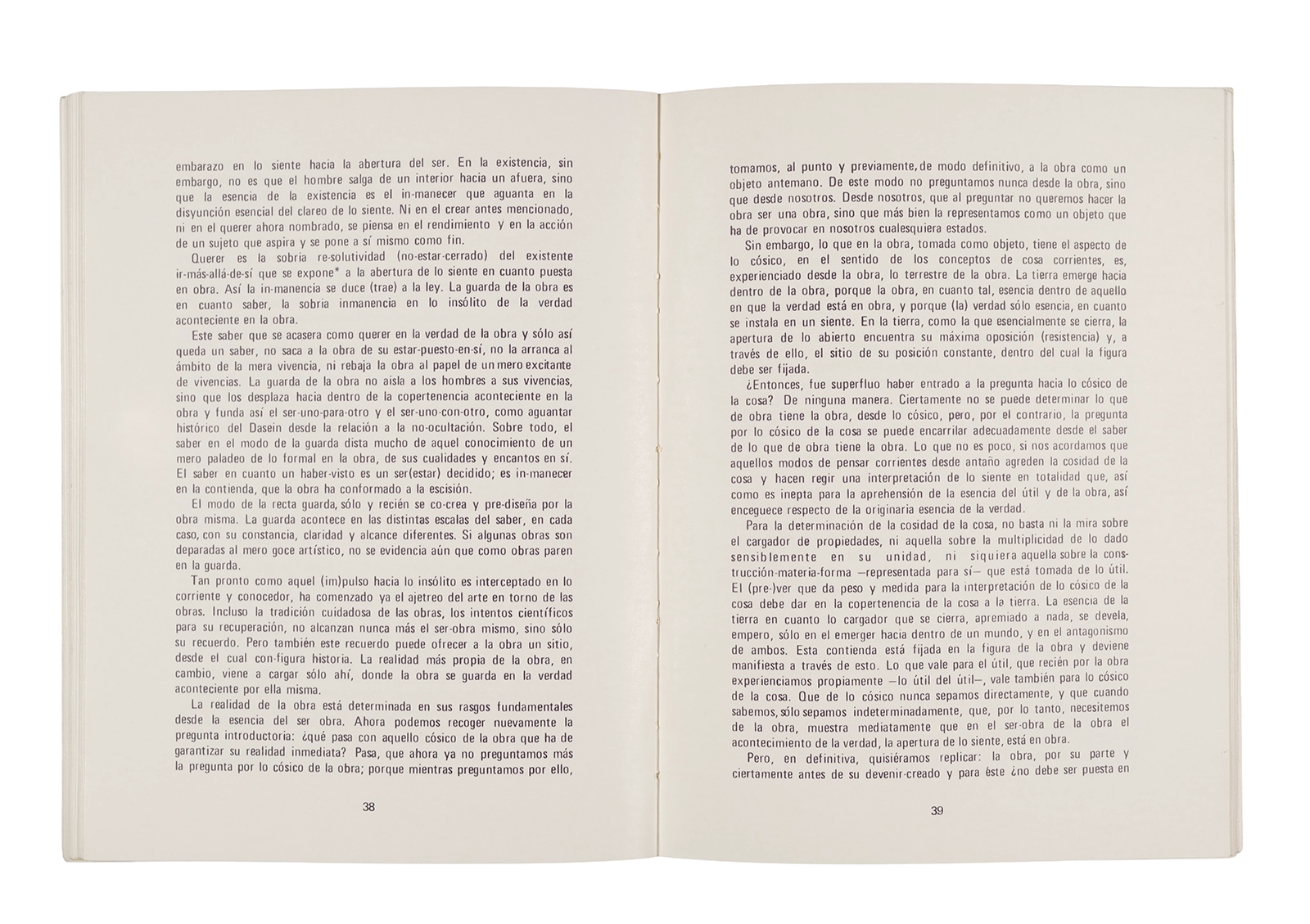 Traducción al español realizada por Ronald Kay del ensayo “El Origen de la Obra de Arte” de Martin Heidegger. Esta fue publicada en 1976 como libro por el Departamento de Estudios Humanísticos, en una edición de uso exclusivo para estudiantes de la Universidad de Chile. Incluye una nota del traductor.
