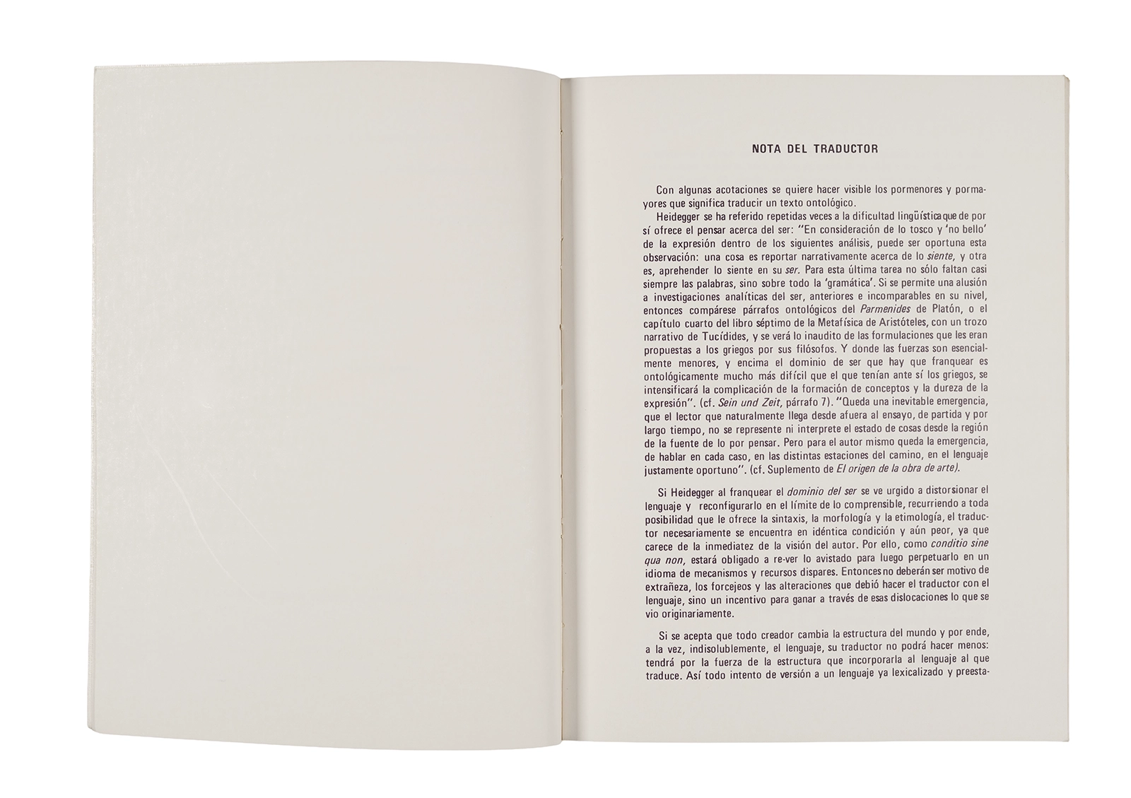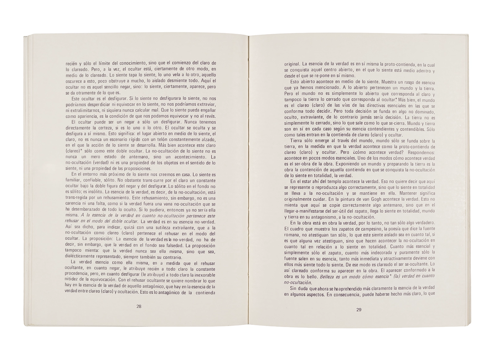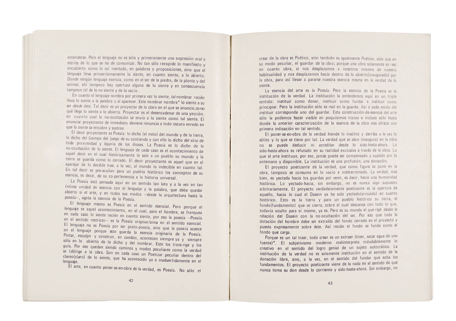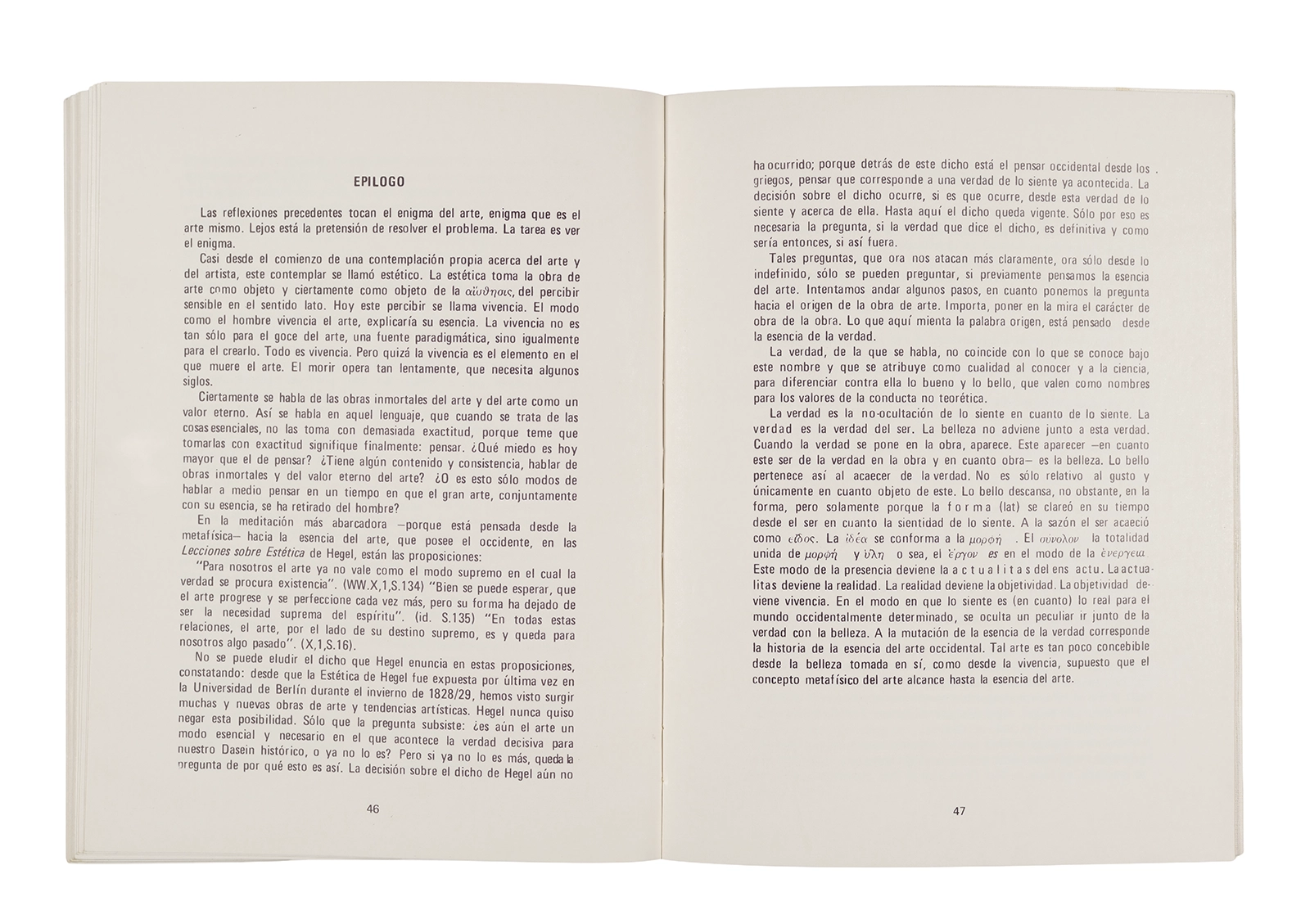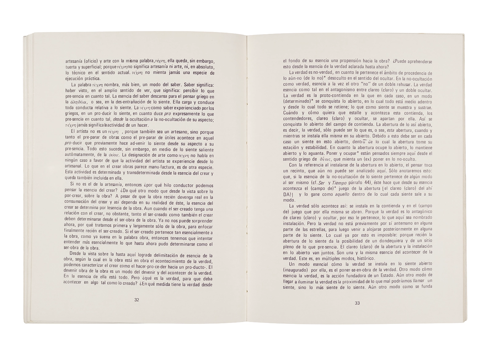 Traducción al español realizada por Ronald Kay del ensayo “El Origen de la Obra de Arte” de Martin Heidegger. Esta fue publicada en 1976 como libro por el Departamento de Estudios Humanísticos, en una edición de uso exclusivo para estudiantes de la Universidad de Chile. Incluye una nota del traductor.