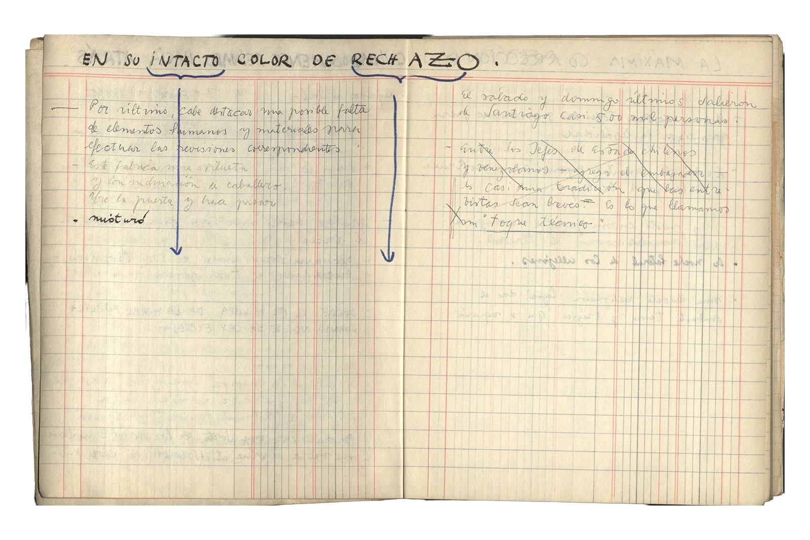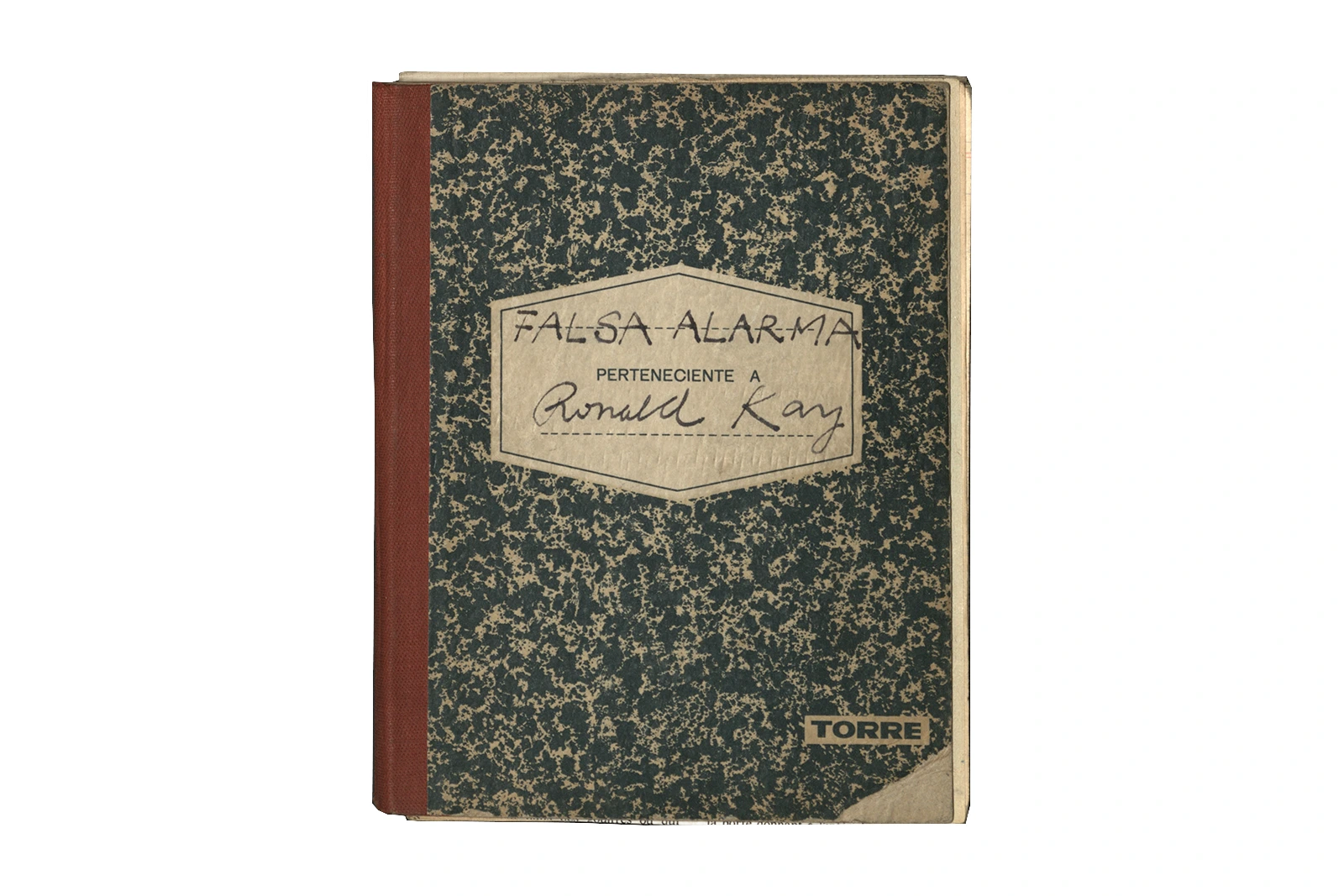 Kay, Ronald (1973) “Falsa alarma” [cuaderno]. Santiago. Fuente: Archivo Ronald Kay.