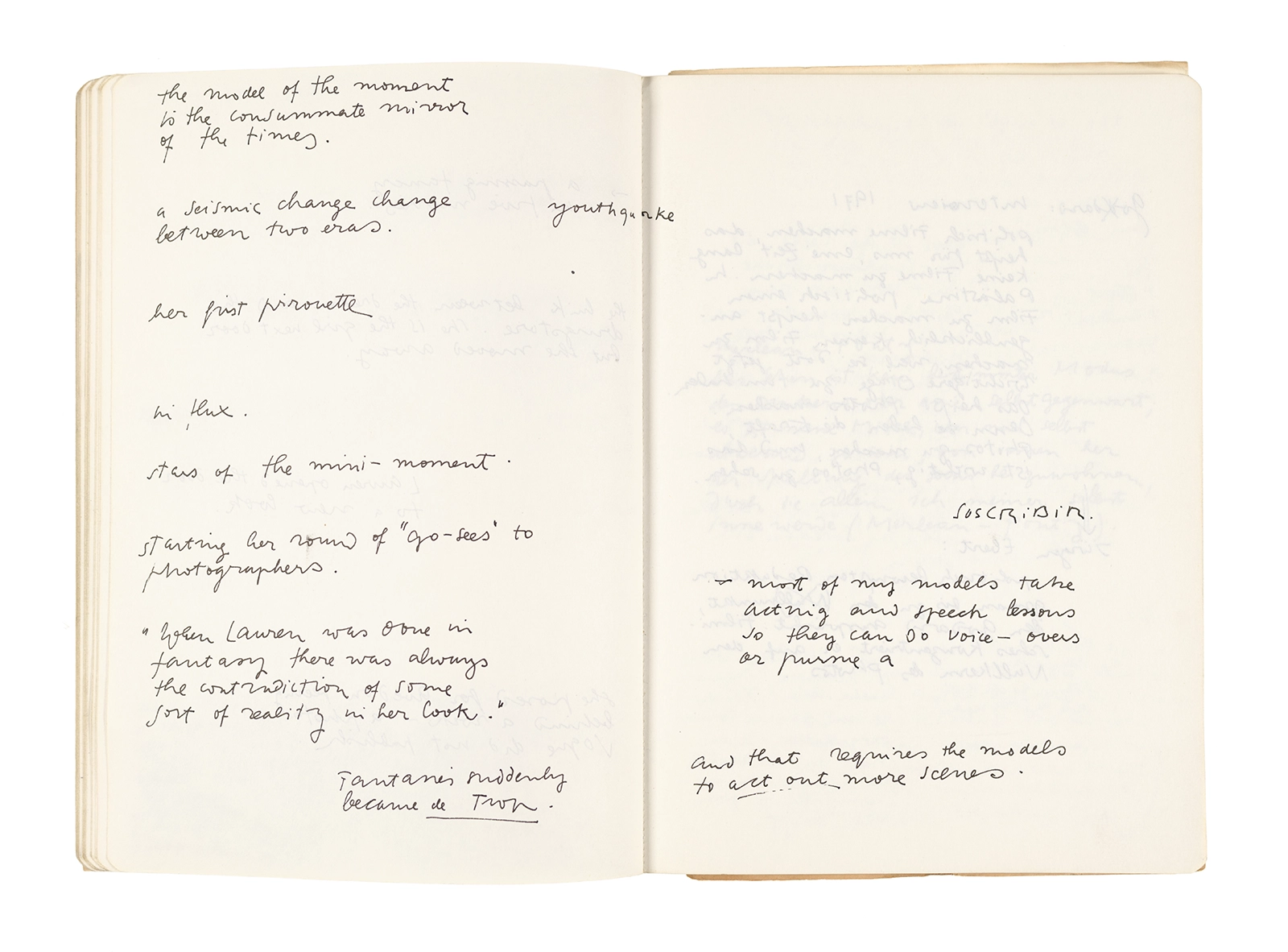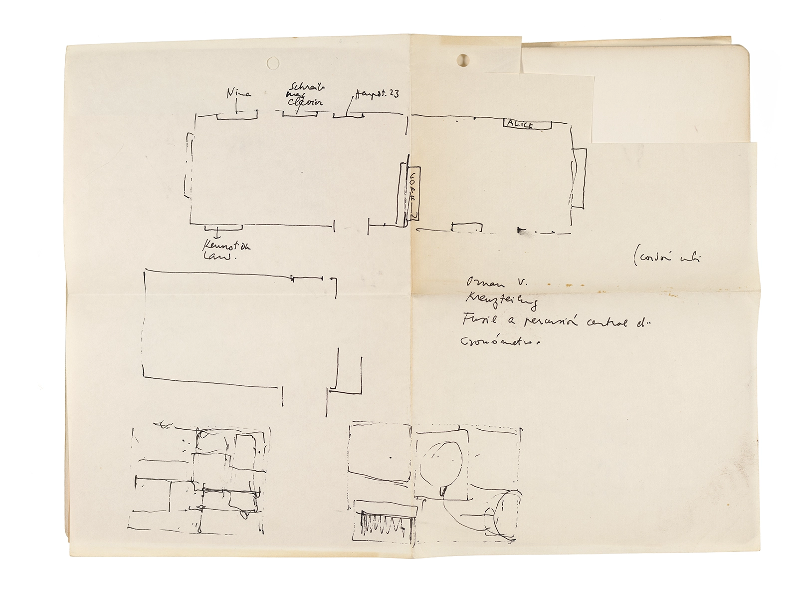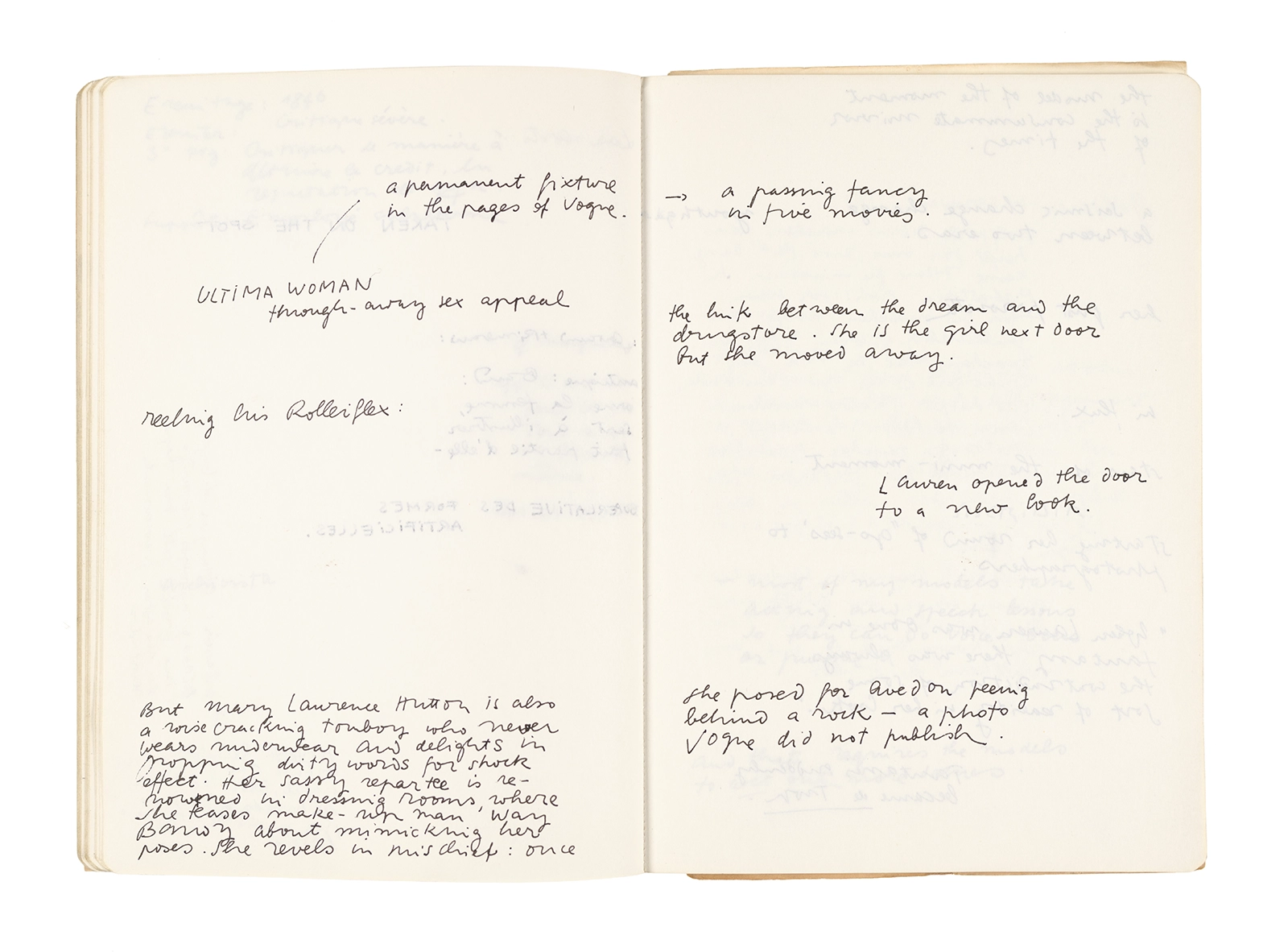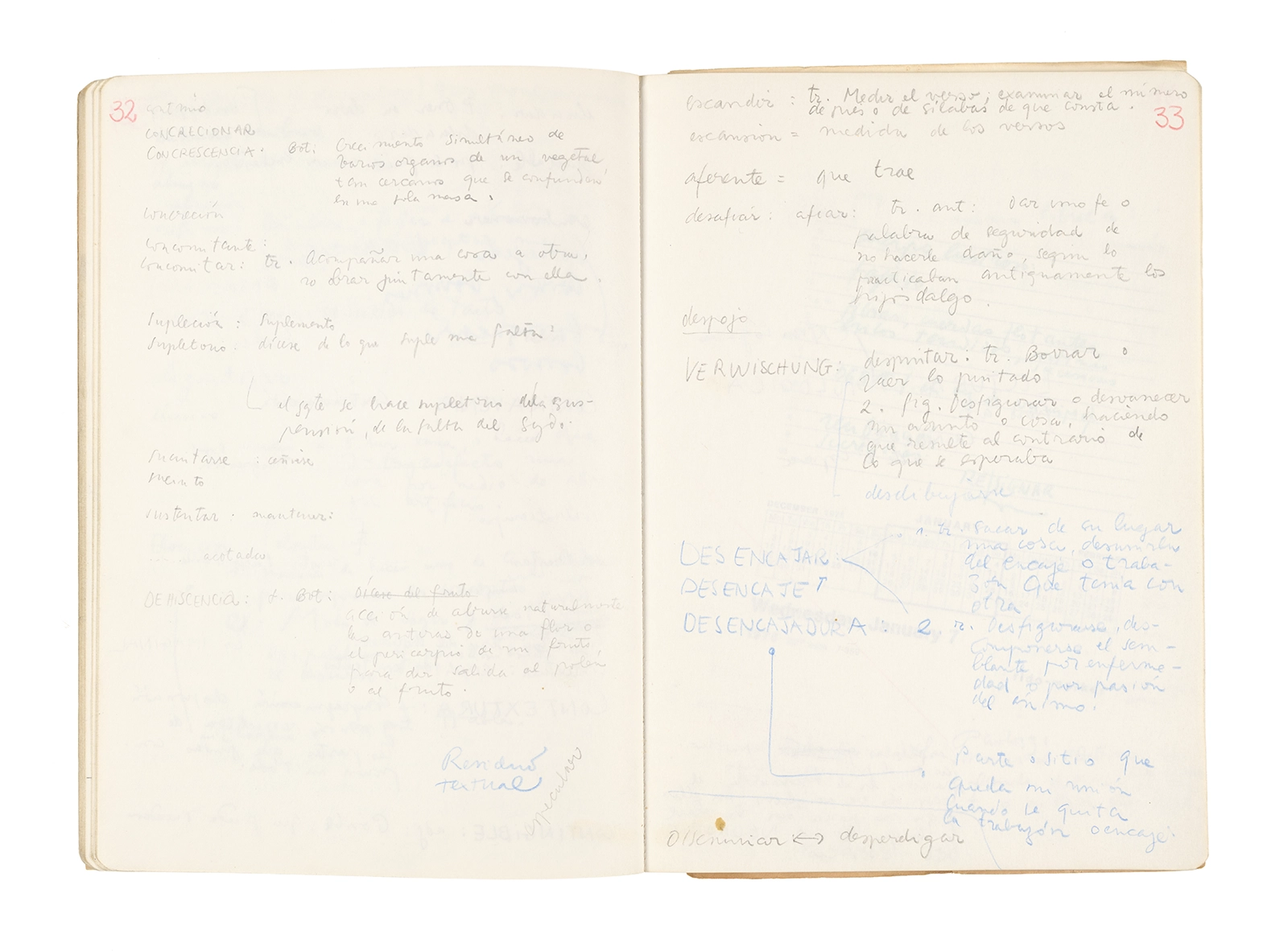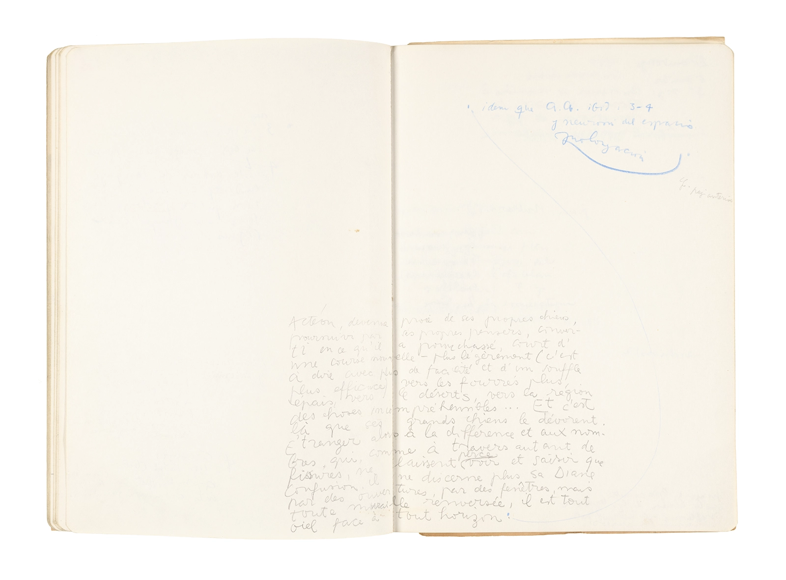 Este cuaderno contiene apuntes diversos, algunos de ellos vinculados a los seminarios “Una hermeneutica teórica y práctica de los escritos de Antonin Artaud” y “Escr:i:magen: Una sistematización de los ensayos teóricos de Stéphane Mallarmé”, dictado por Ronald Kay durante los años 1974 y 1975 en el Departamento de Estudios Humanísticos de la Universidad de Chile. Aquí se incluyen, además, notas sobre fotografía, sobre el concepto de “ready-made” y sobre los happenings de Wolf Vostell, así como también menciones a Paul Valéry, Ronald Kitaj, Roland Barthes, Martin Heidegger, Walter Benjamin, Maurice Merleau-Ponty, André Bazin, Marx Ernst, Wallace Stevens y E. E. Cummings, entre otros. Asimismo, este cuaderno contiene notas referentes a la revista “Manuscritos”.