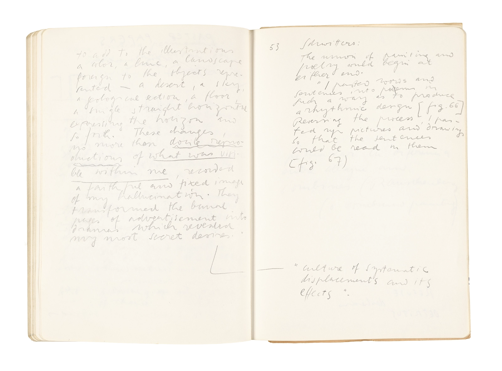 Antonin Artaud; Stéphane Mallarmé; Wolf Vostell; Paul Valéry; Ronald Kitaj; Roland Barthes; Martin Heidegger; Walter Benjamin; Maurice Merleau-Ponty; André Bazin; Marx Ernst; Wallace Stevens; E. E. Cummings