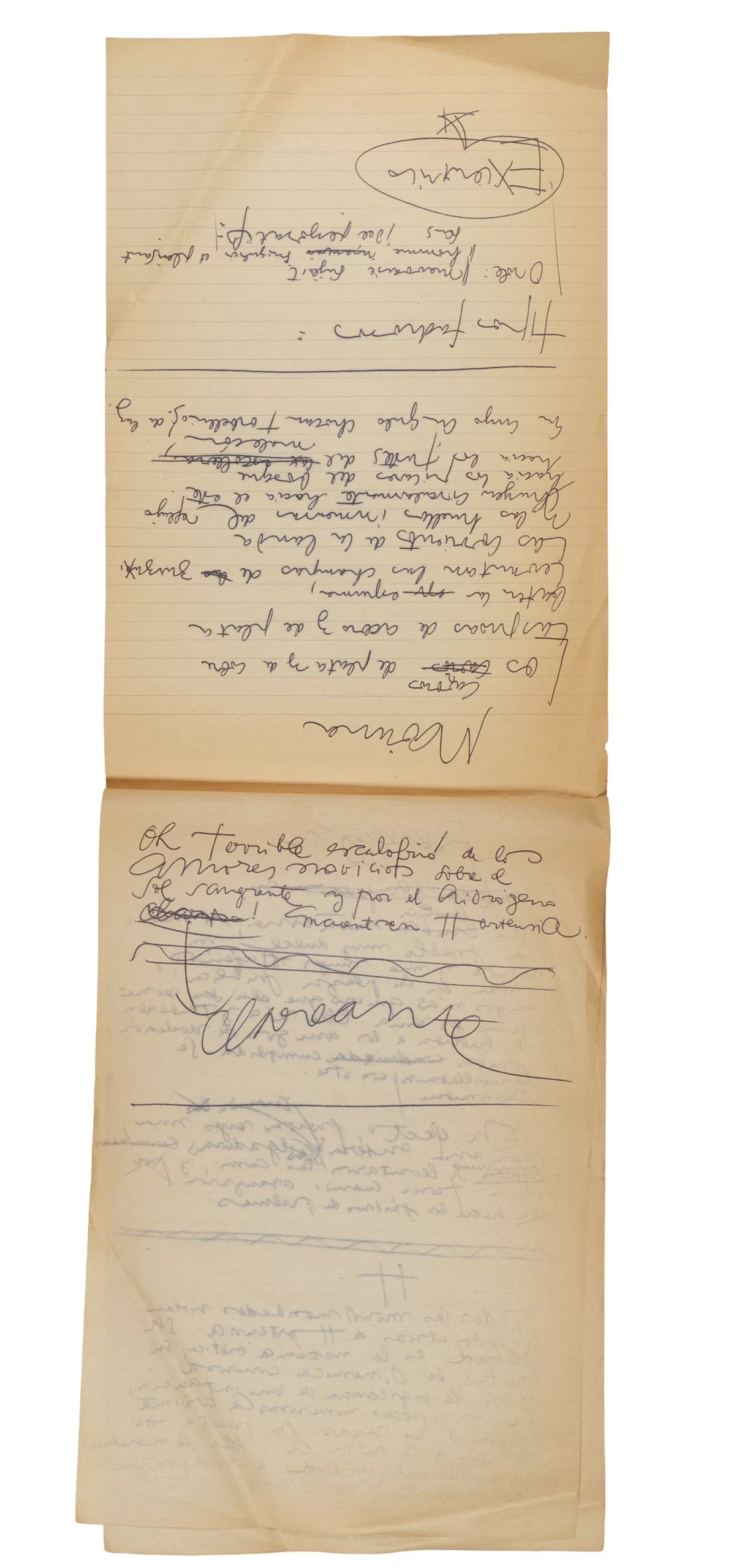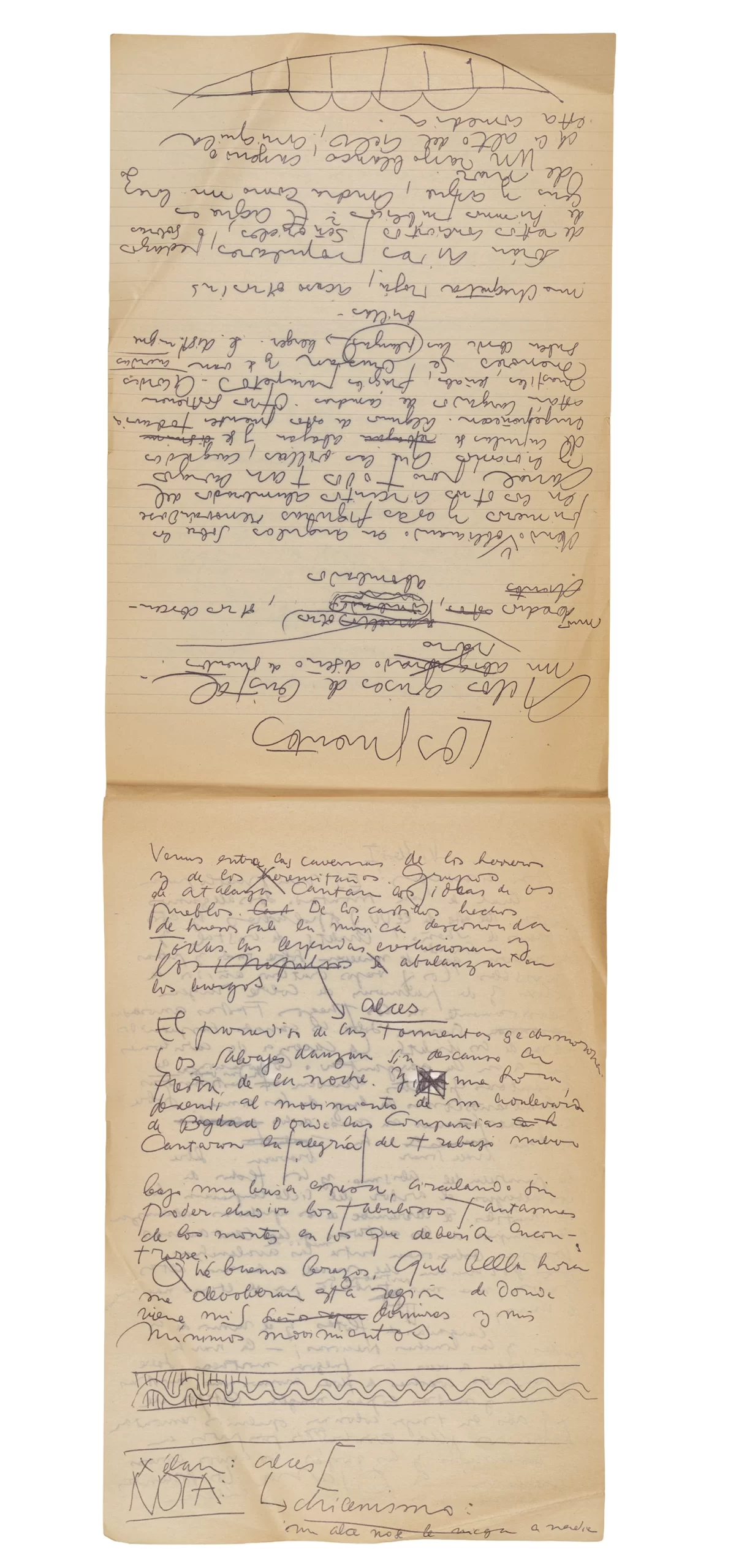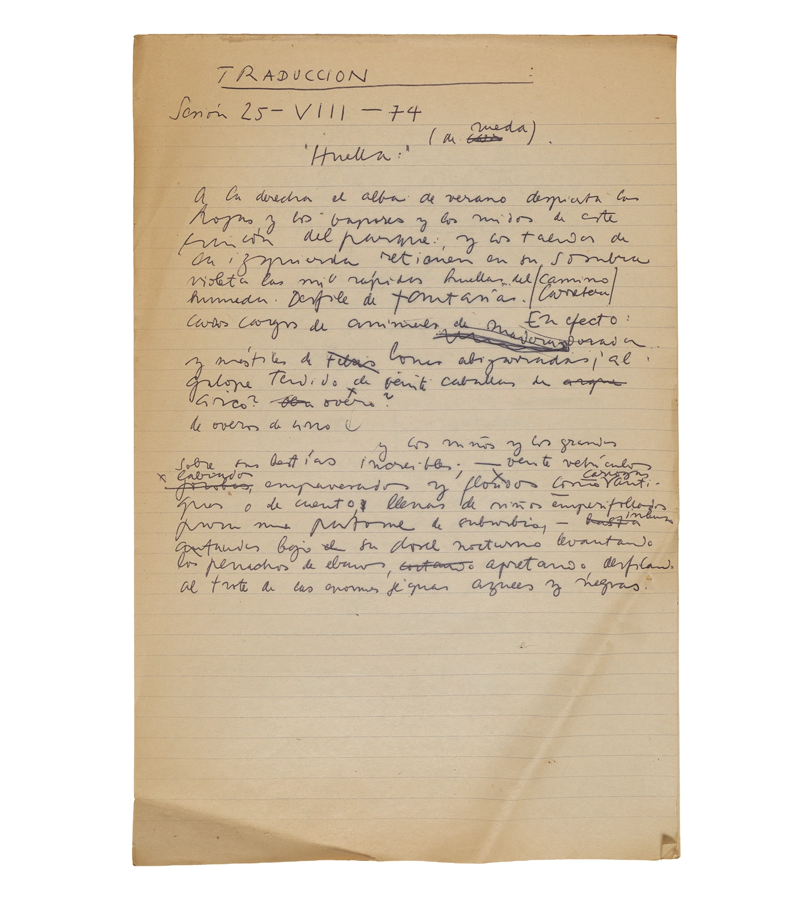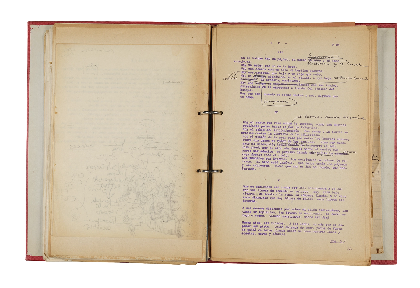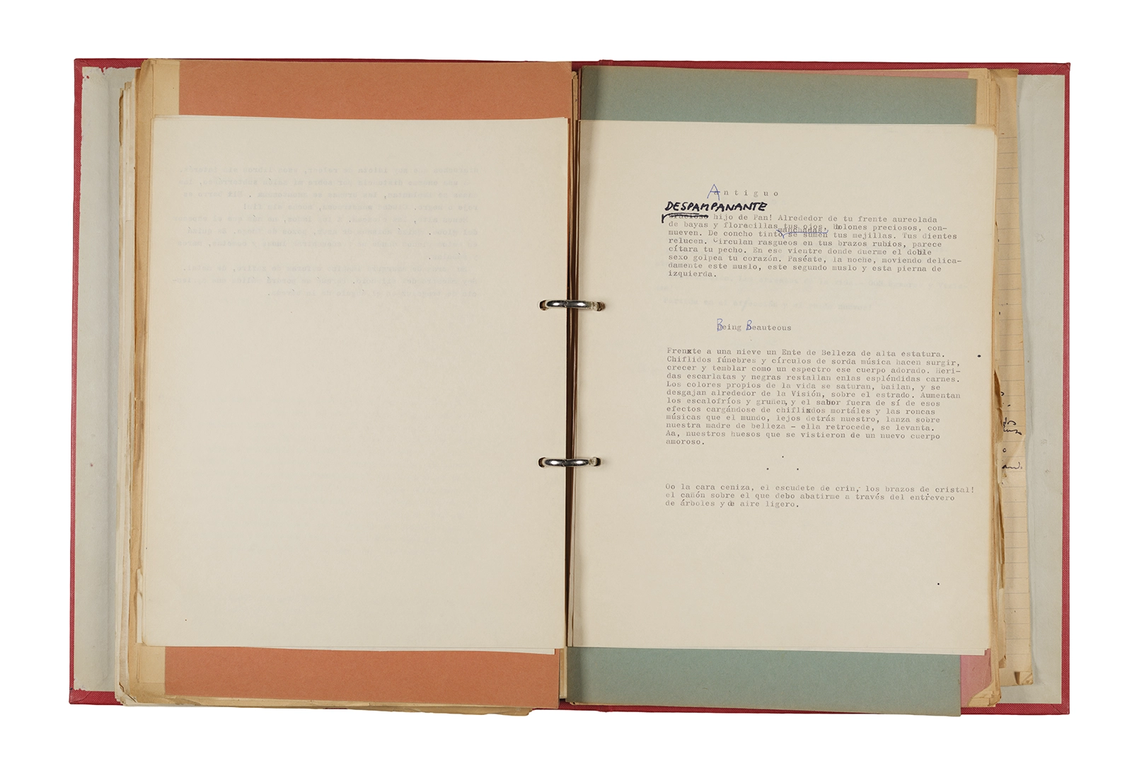 Esta carpeta reúne distintos materiales vinculados al seminario colectivo sobre la poesía de Arthur Rimbaud dictados por Ronald Kay y Enrique Lihn entre 1973 y 1974 en el Departamento de Estudios Humanísticos de la Universidad de Chile. Contiene un análisis mecanografiado del poema “Devoción” de Rimbaud, un dossier preparado para las sesiones del Seminario realizadas durante 1974 con la traducción de veinte textos de “Iluminaciones”, con correcciones y comentarios, así como una selección más breve de traducciones rotuladas “Manuscritos ya publicados por el Departamento de Estudios Humanísticos”. Se incluye aquí también el dibujo de un plano de Santiago, distintos trabajo realizados en el marco del Seminario —entre ellos, el texto “Texto y ‘Realidad'” de Patricio Marchant—, y listas de asistencia de las sesiones realizadas durante noviembre de 1973. Por último, esta carpeta contiene también una serie de diagramas y viñetas con planificaciones de posibles acciones en el espacio público. Estos últimos documentos, fechados en octubre de 1974, incluyen los nombres de los siguientes participantes del seminario Signometraje, también dictado por Kay en el DEH: Juan Balbontín, Diamela Eltit, Catalina Parra y Raúl Zurita.
