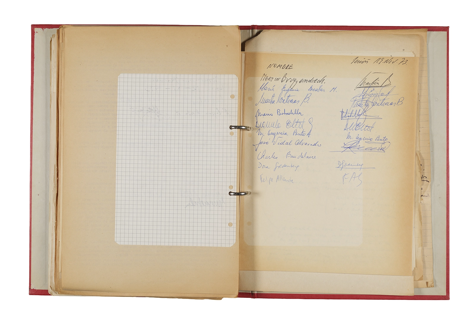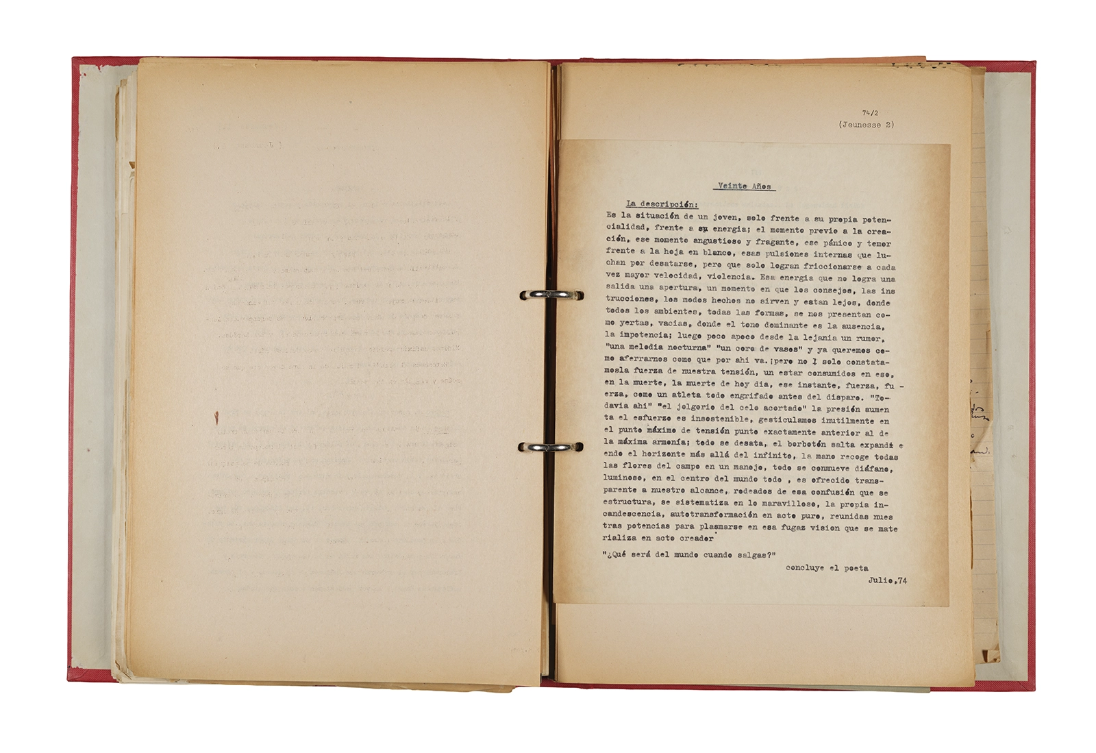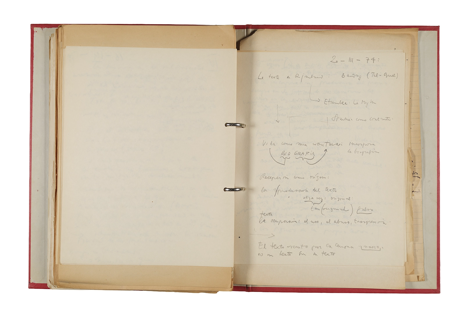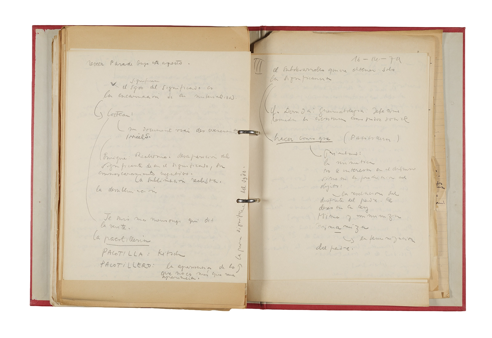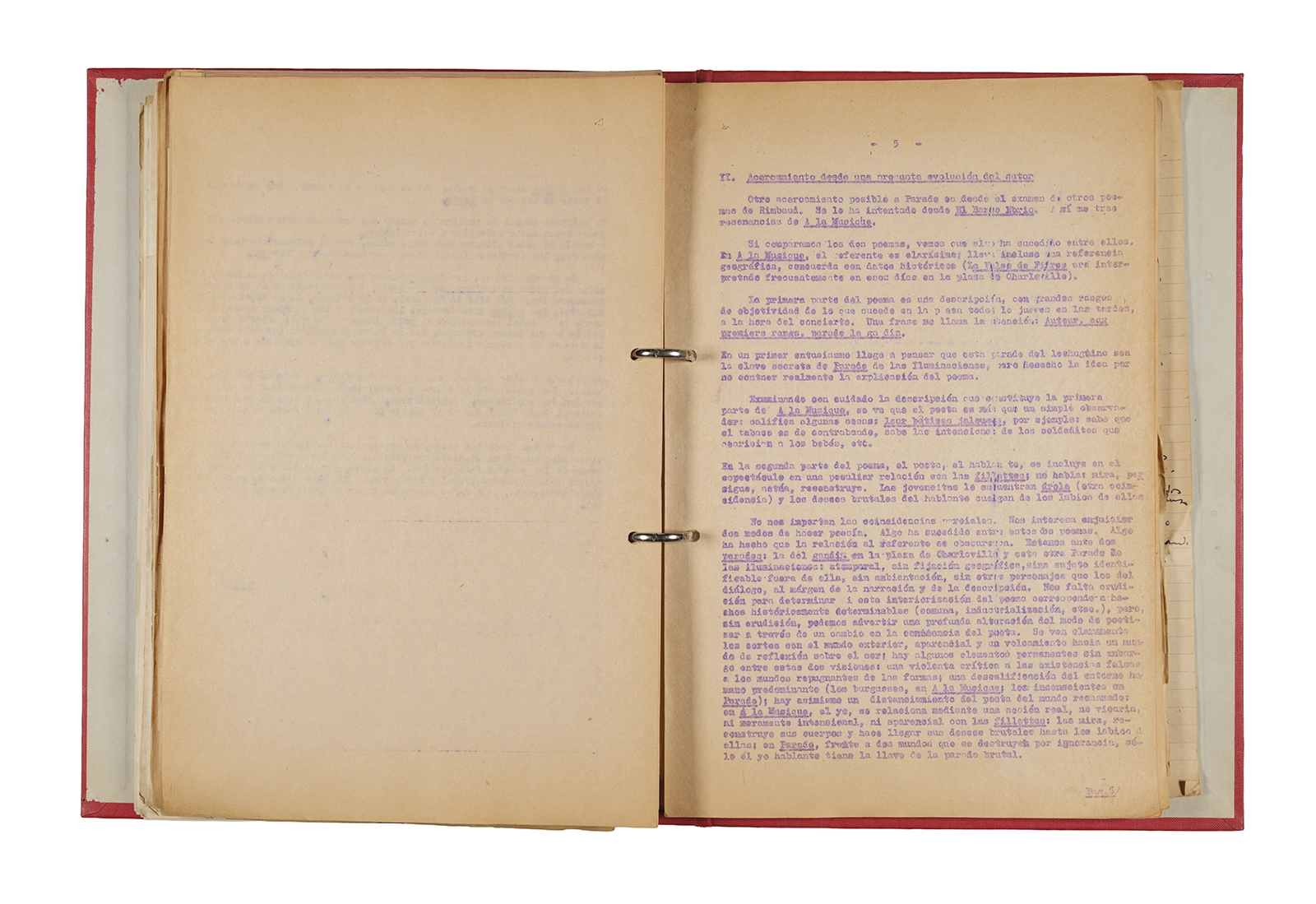 Carpeta Seminario Rimbaud 1973/74: apuntes, dossier traducciones, trabajos, lista de asistencia.
