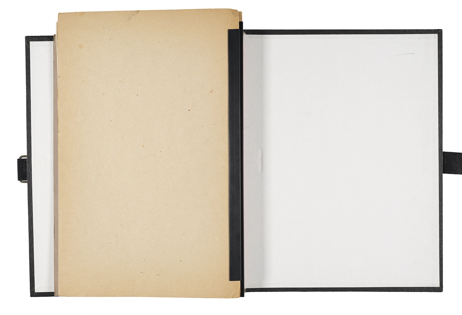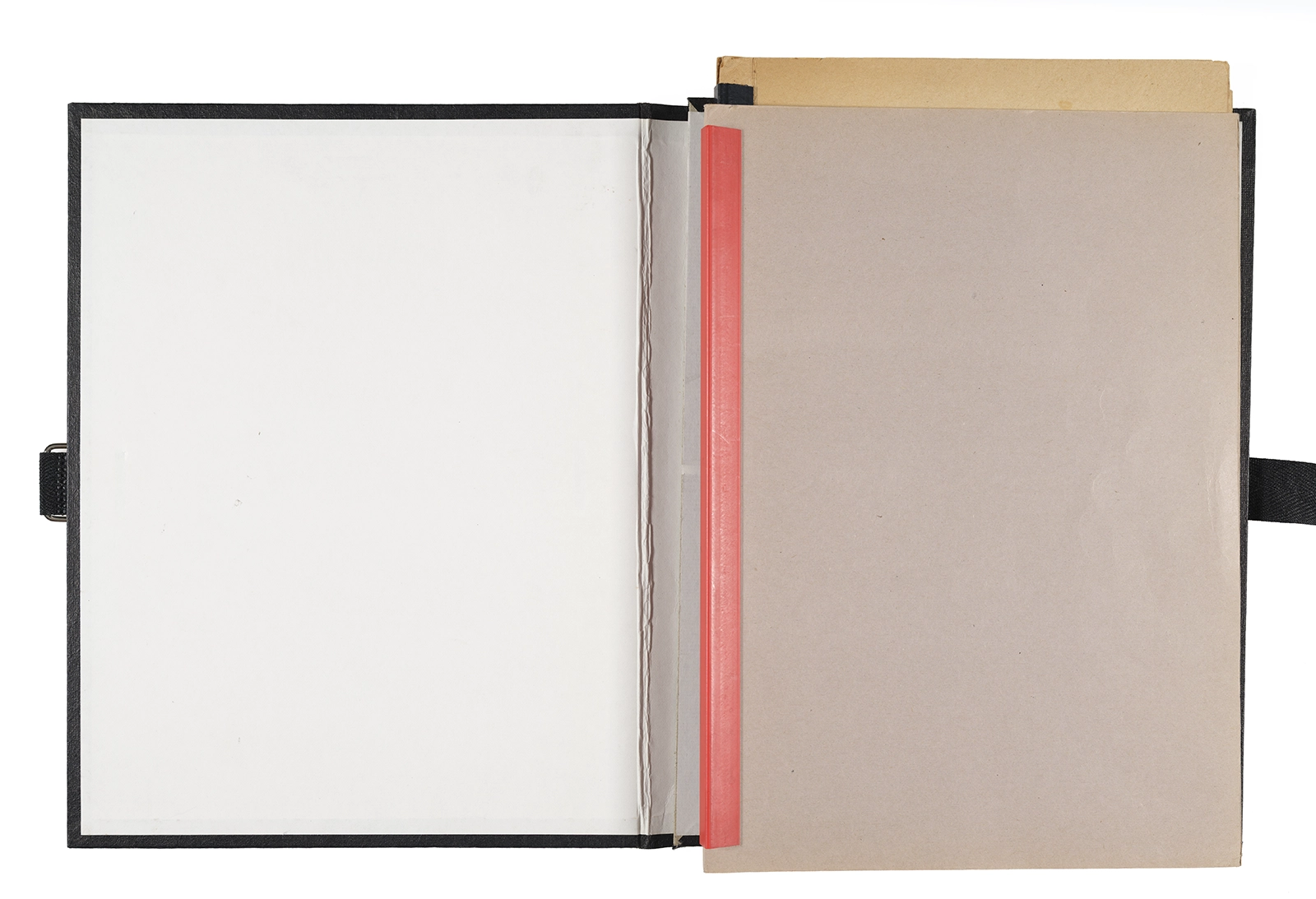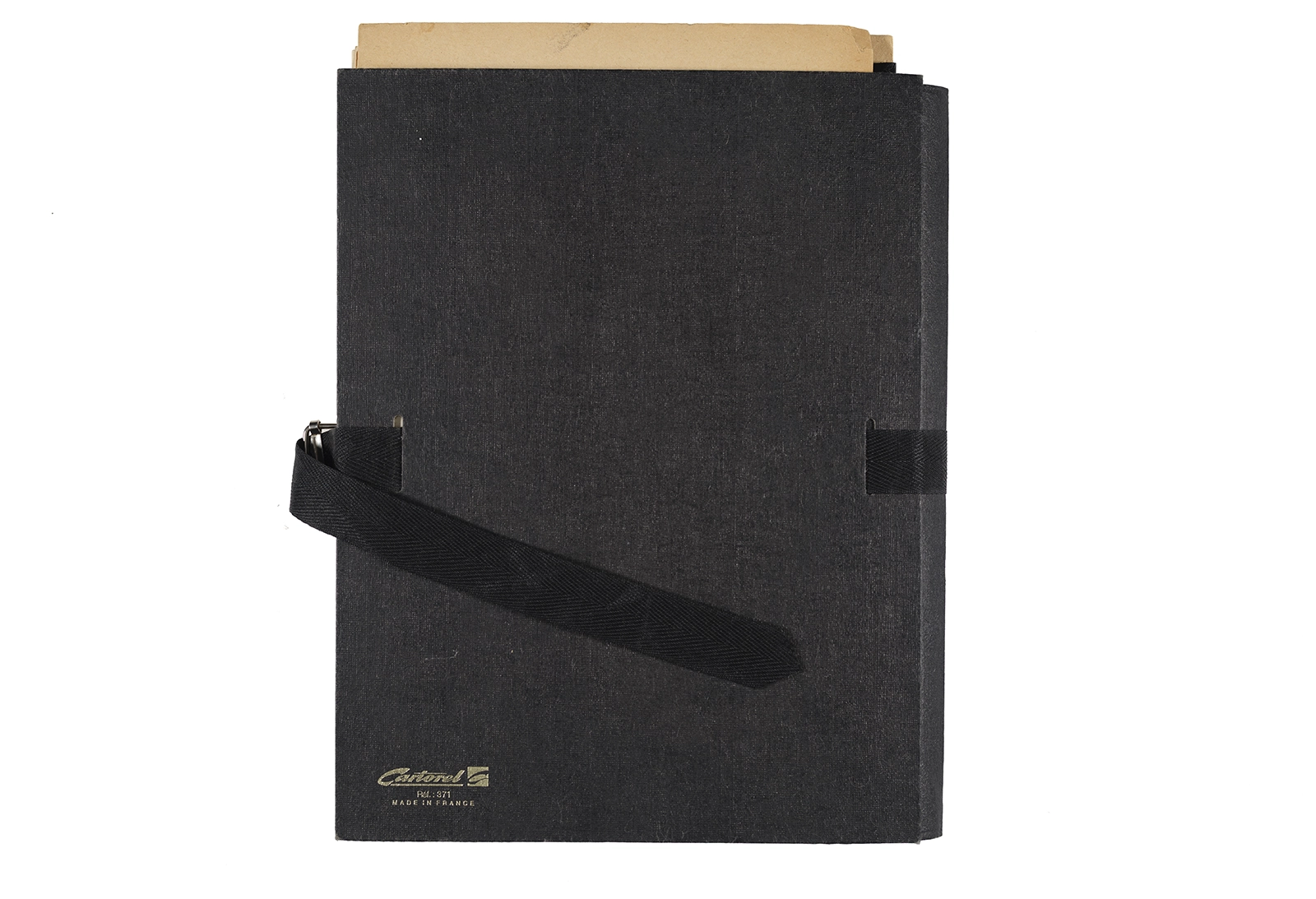 Papel mecanografiado, manuscritos en tinta y grafito, cartón piedra.