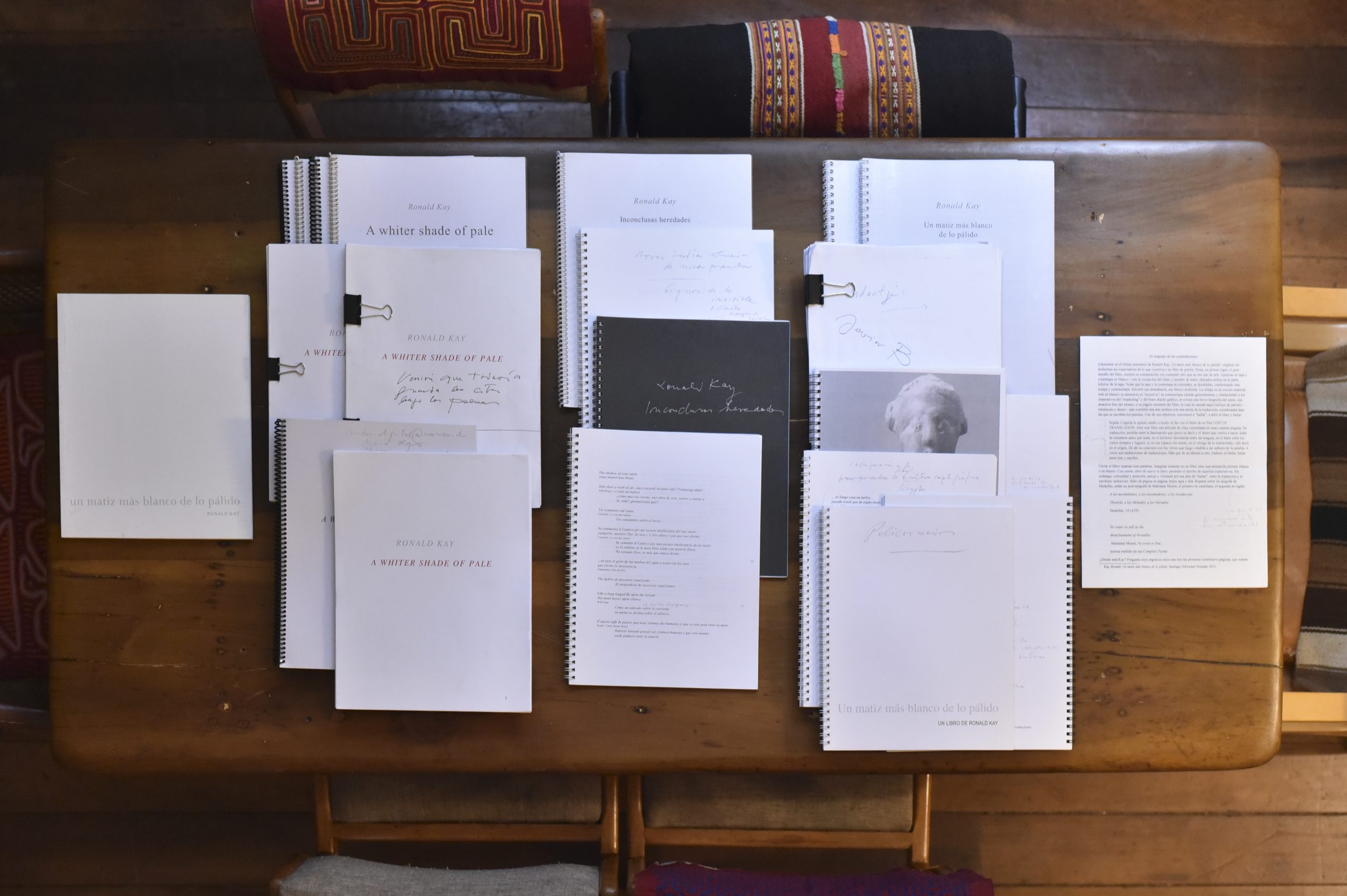 Esta serie comprende trece expedientes relativos a las publicaciones en las que Ronald Kay trabajó en Chile entre los años 2000 y 2017. Entre ellos, destacan las reediciones de sus obras más emblemáticas —Del espacio de acá (Ediciones Metales Pesados, 2005) y Variaciones Ornamentales (Ediciones de la Universidad Diego Portales, 2009)—, sus participaciones en la revista Pensar & Poetizar de la Pontificia Universidad Católica de Valparaíso, y publicaciones vinculadas al trabajo de otros artistas, como Juan Luis Martínez o Lorenzo Berg